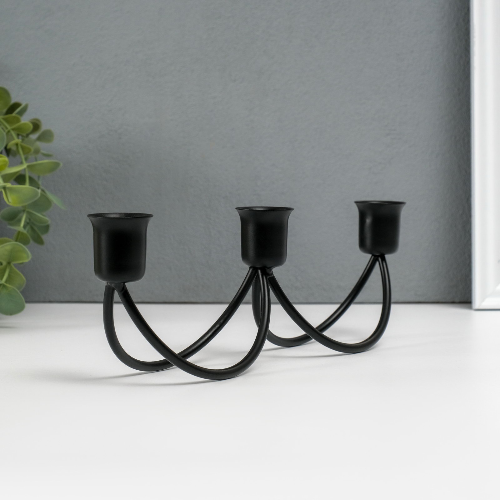 Металлический подсвечник на 3 свечи "Качели", чёрный, 8.5x26.5x5.5 см, 26.5x5.5x8.5 см., Китай