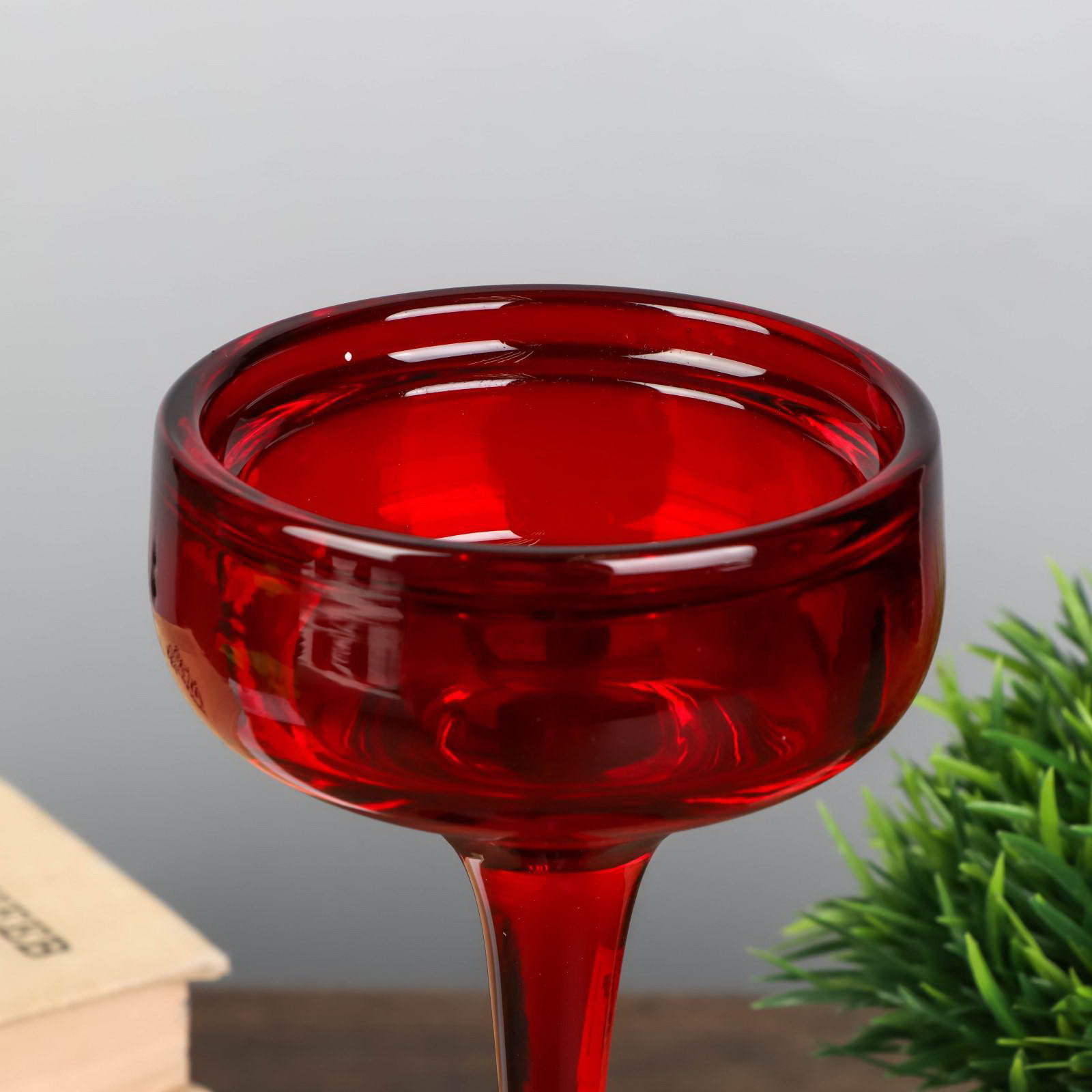 Стеклянный подсвечник на 1 свечу "Бокал-креманка", набор 3 шт., красный, h=20 см, 23 см, 26x8x8 см, 12x12x24.5 см., Китай