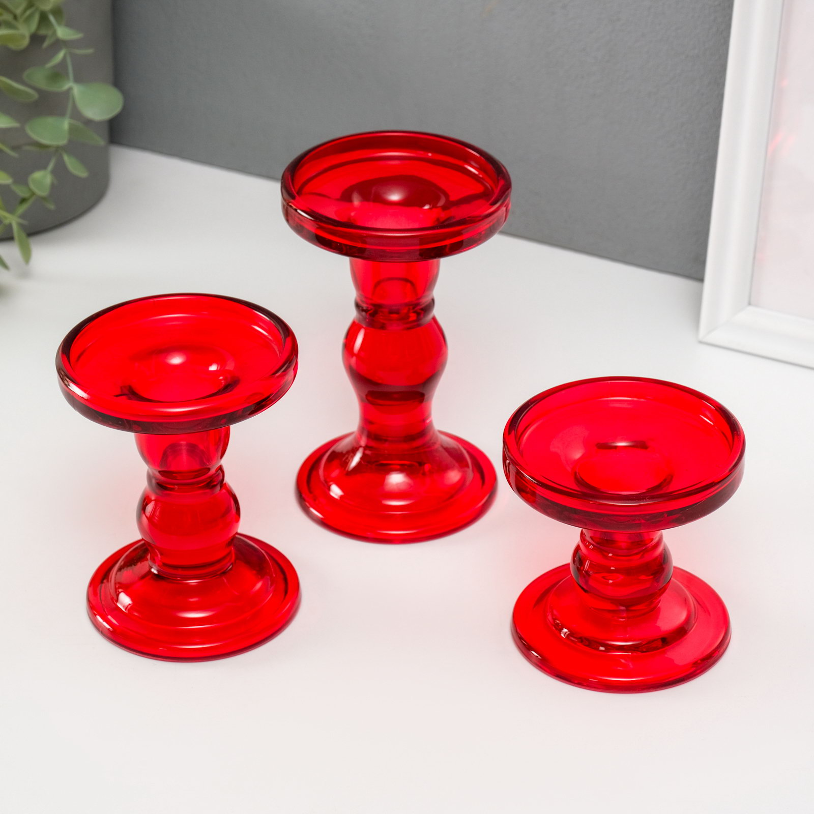 Стеклянный подсвечник на 1 свечу "Креманка", набор 3 шт., красный, h=8.5, см 11.4 см, 14x8.5x8.5 см, 8.5x8.5x14 см., Китай