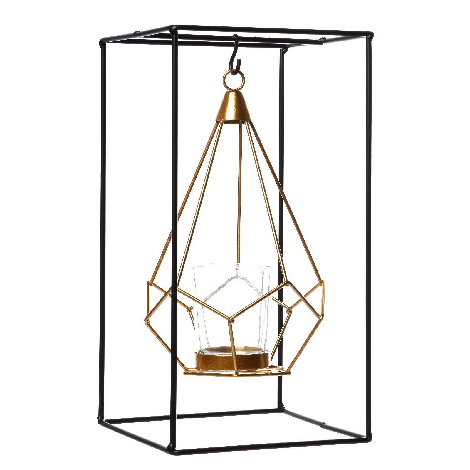 Металлический подсвечник на 1 свечу "Пирамида в прямоугольнике", 26x13x13 см, 13x13x26 см., Китай