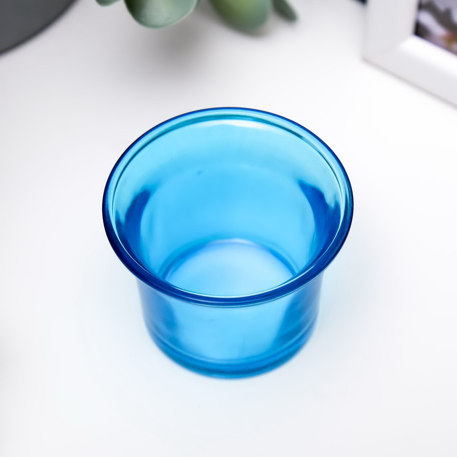 Стеклянный подсвечник на 1 свечу "Глянец", голубой, 4.7x6.2x6.2 см, 6.2x6.2x4.7 см., Китай