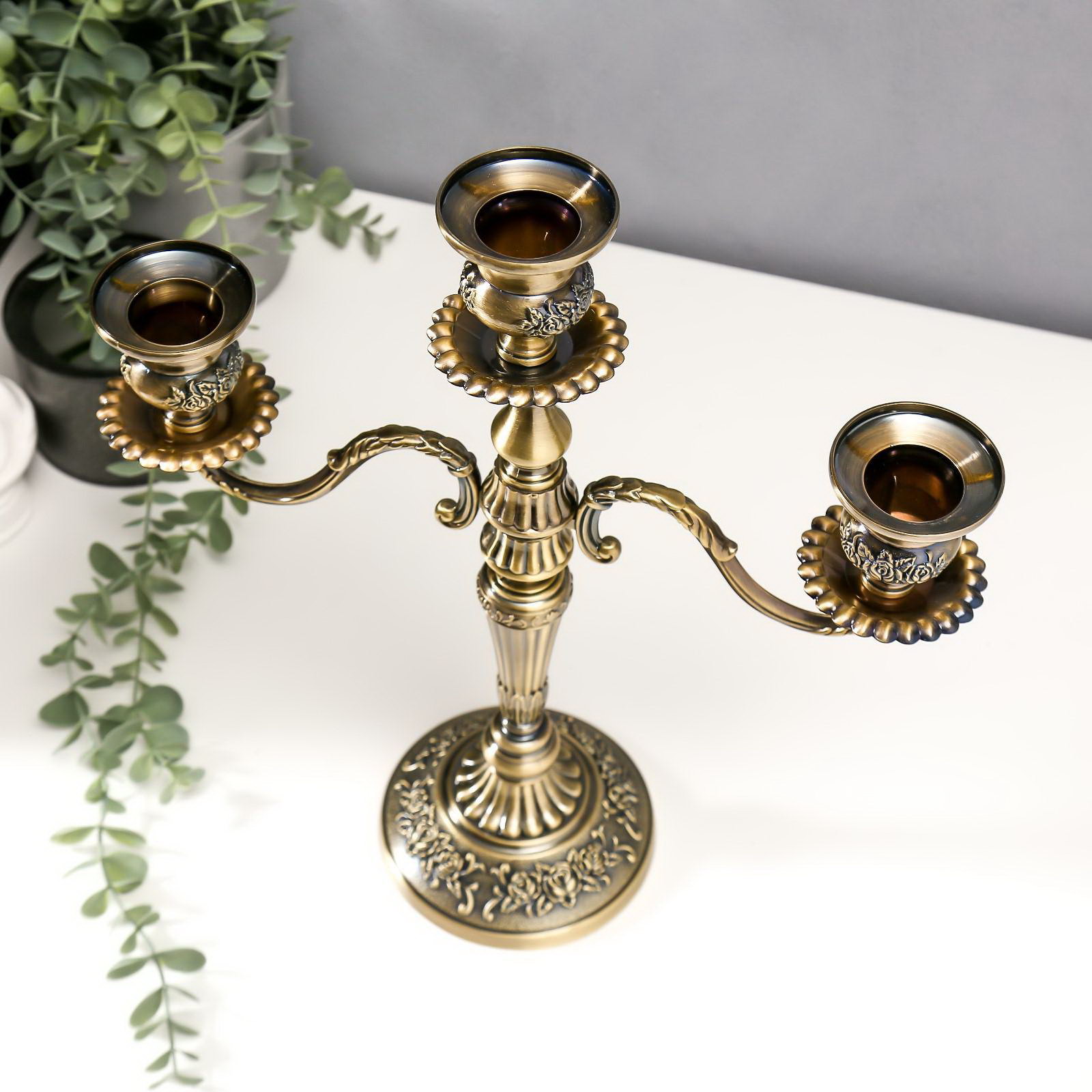 Металлический подсвечник на 3 свечи "Канделябр. Рим", под латунь, 36x32x12.5 см, 32x12.5x36 см., Китай