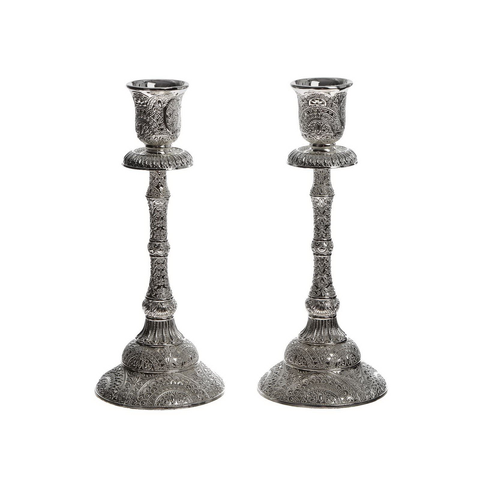 Металлический подсвечник на 1 свечу "Великолепный век", набор 2 шт., серебро, 19x8x8 см, 8x8x19 см., Китай