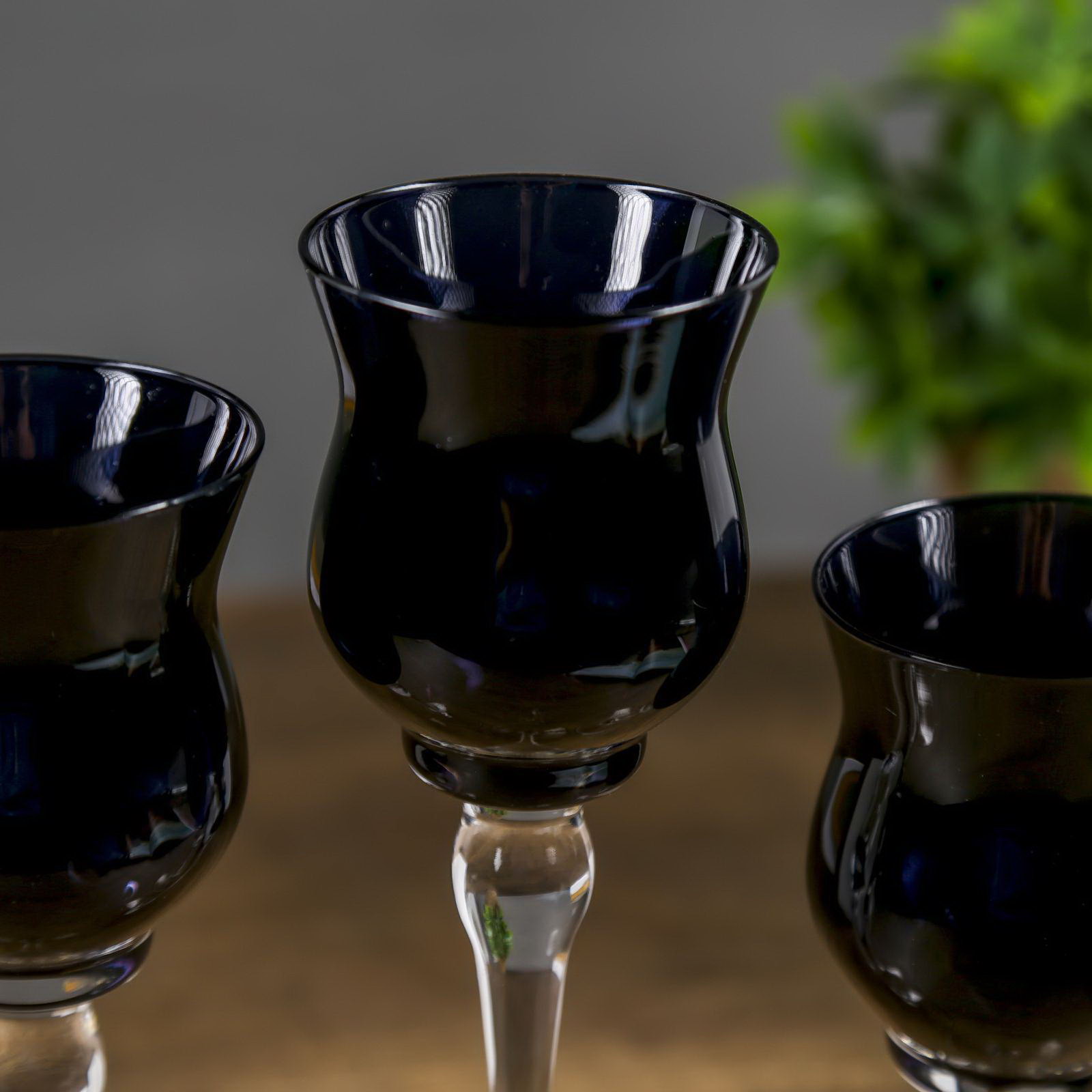 Стеклянный подсвечник на 1 свечу "Вуаль", набор 3 шт., чёрный, h=26см, 23 см, 20 см, 23x26x20 см., Китай
