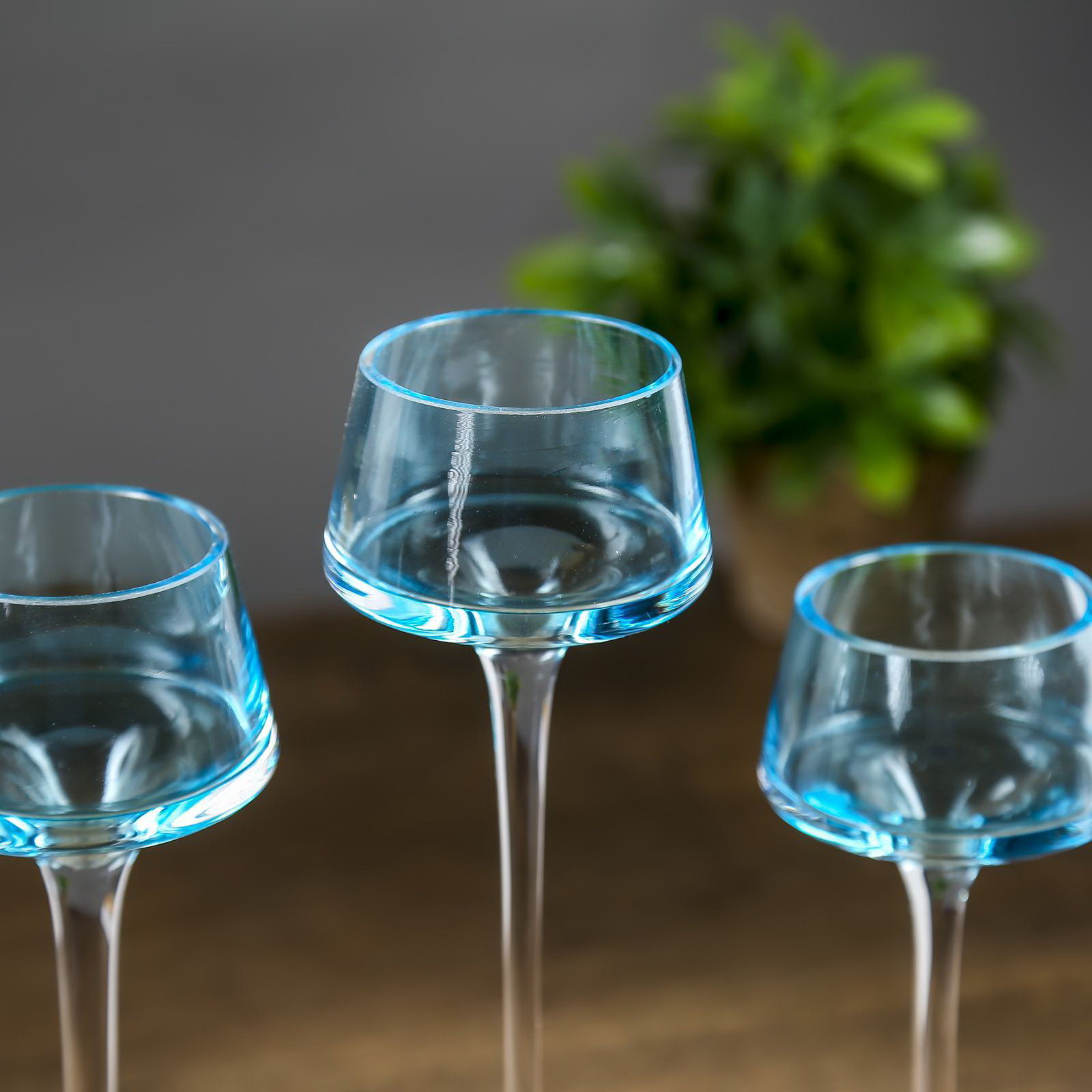 Стеклянный подсвечник на 1 свечу "Индиго", набор 3 шт., синий, h=26 см, 23 см, 20 см, 23x26x20 см., Китай