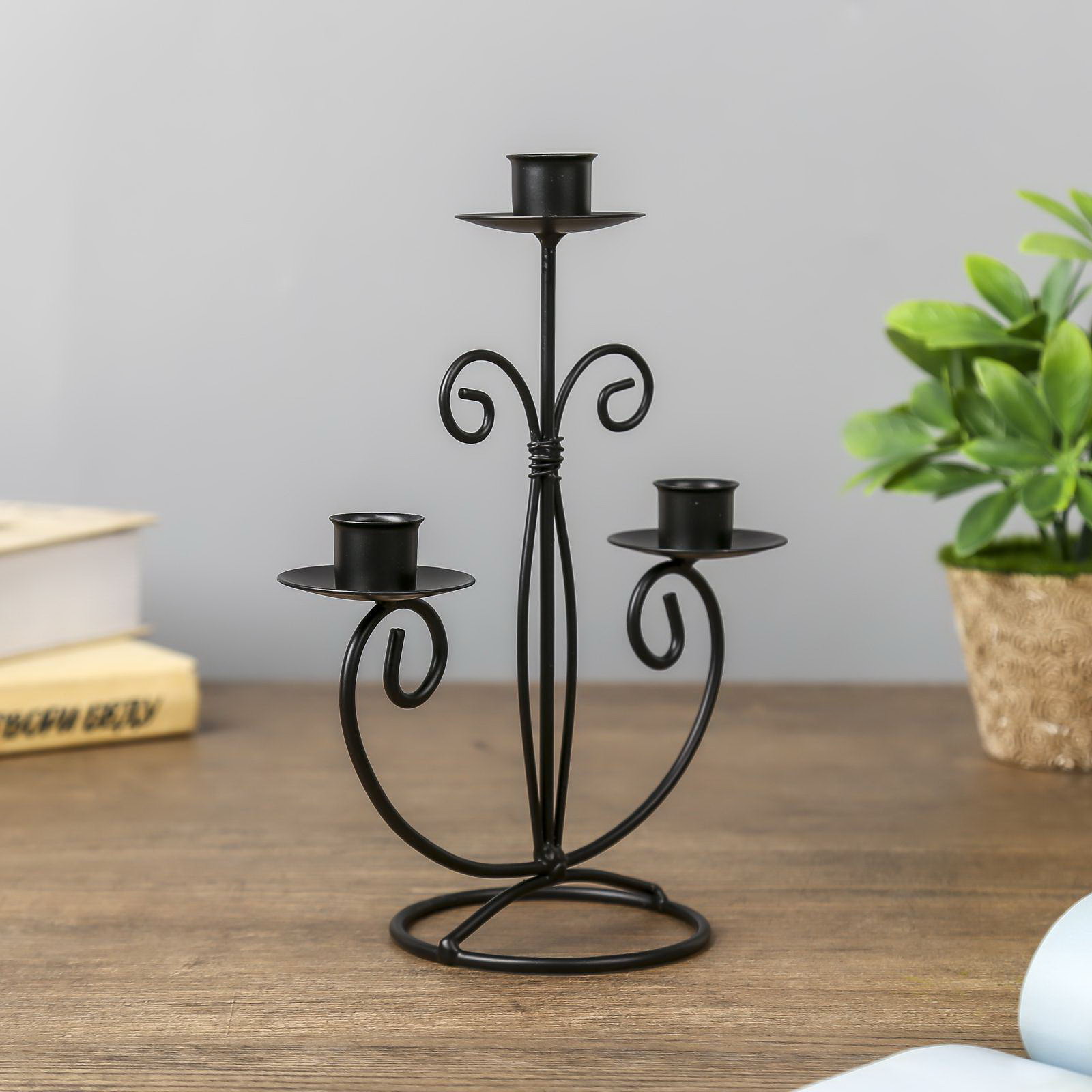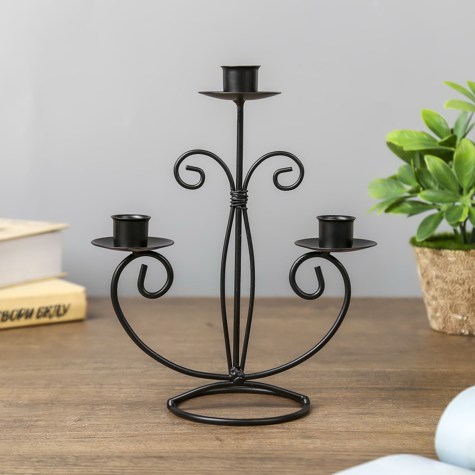 Металлический подсвечник на 3 свечи "Дворцовый", чёрный, 21.5x15.5x9 см, 15.5x9x21.5 см., Китай