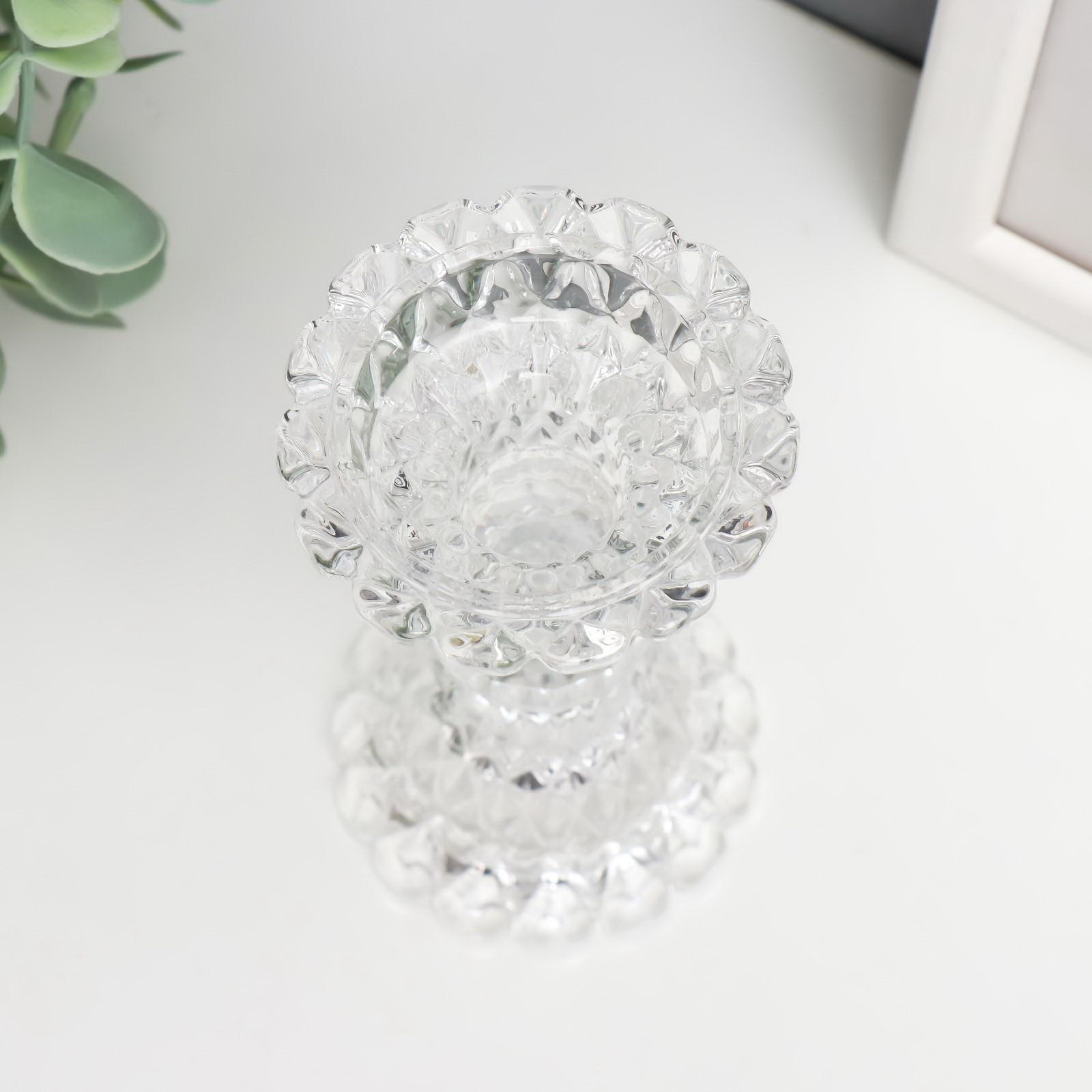 Стеклянный подсвечник на 1 свечу "Кристалл", прозрачный, 13x6x6 см, 6x13x6 см., Китай