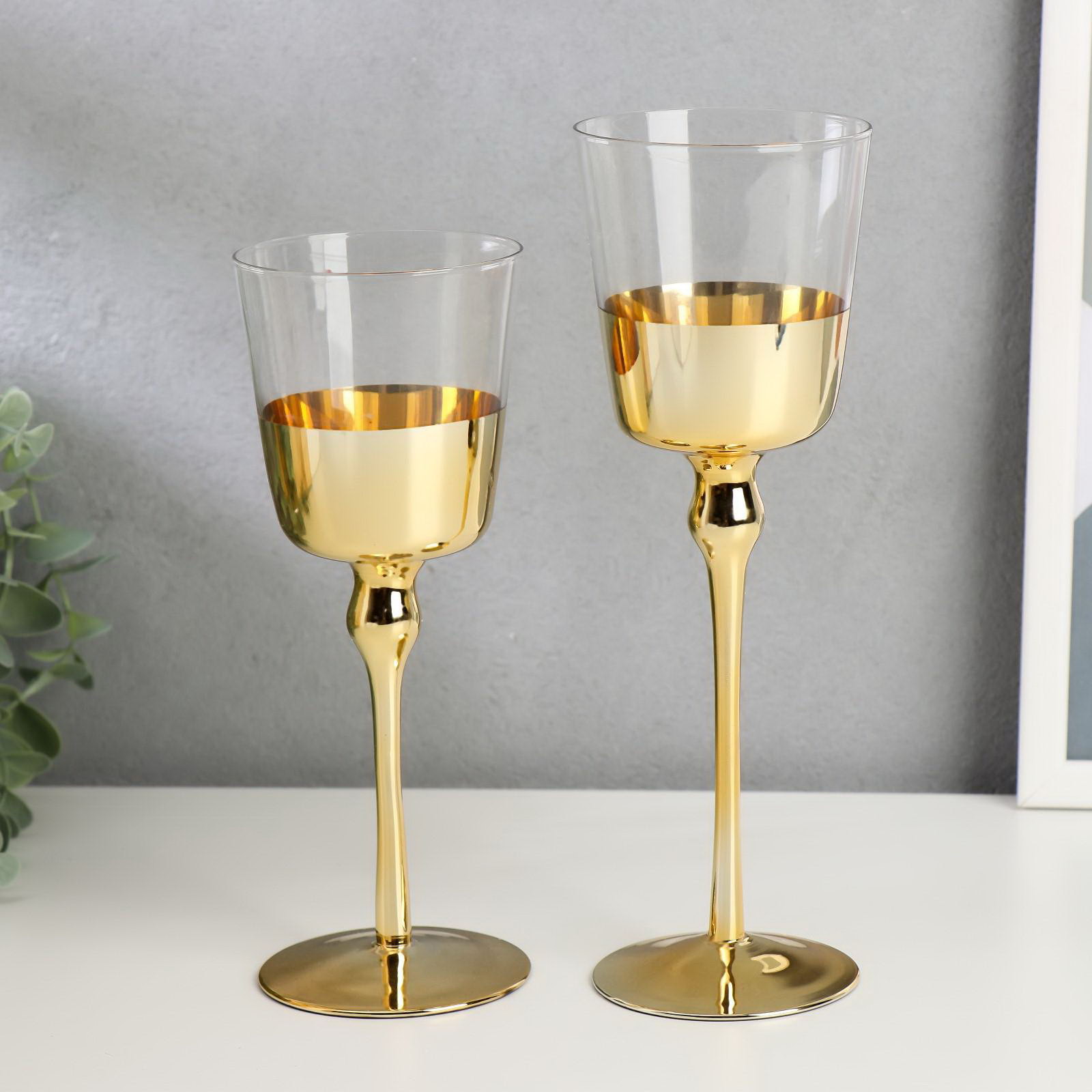 Набор подсвечников на 1 свечу "Романтика свечей", 2 шт., стекло, золотистый, h=23 см, 20 см, 26 см., Китай