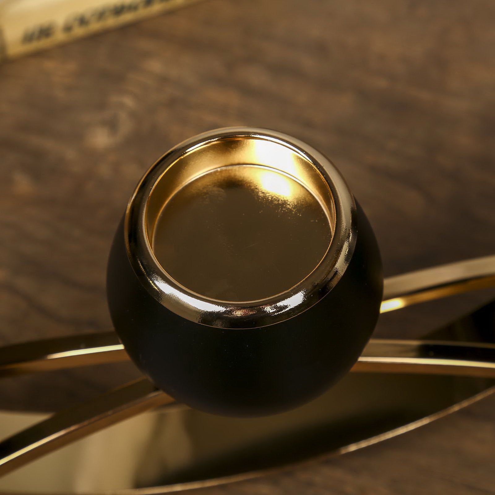 Подсвечник на 3 свечи "Тёмный рыцарь", металл, стекло, чёрный матовый с золотом, 40x25x12 см, 25x40x12 см., Китай