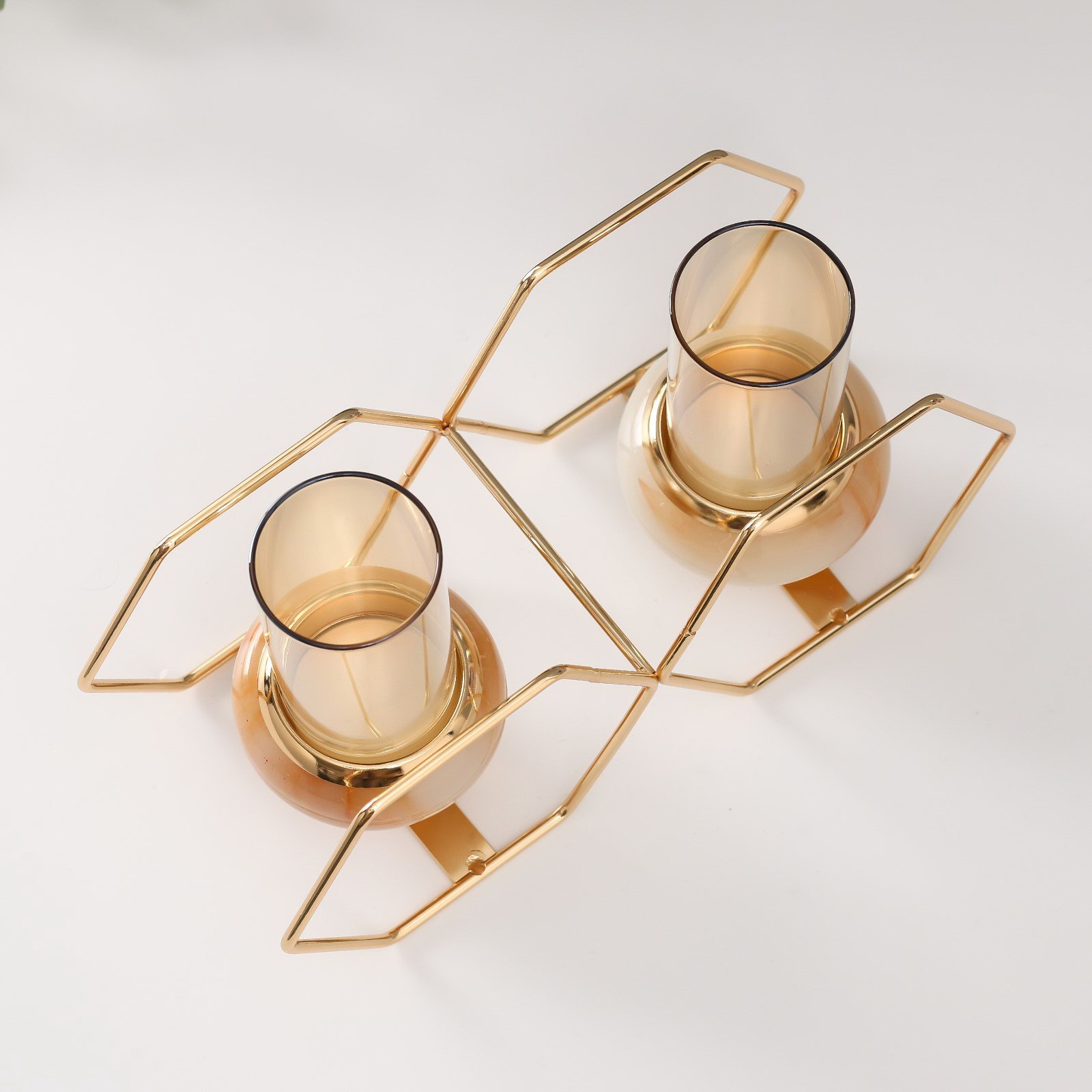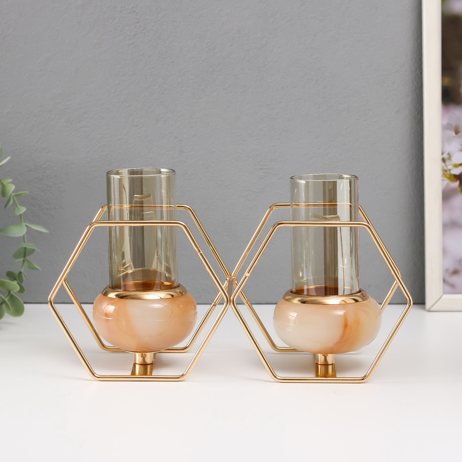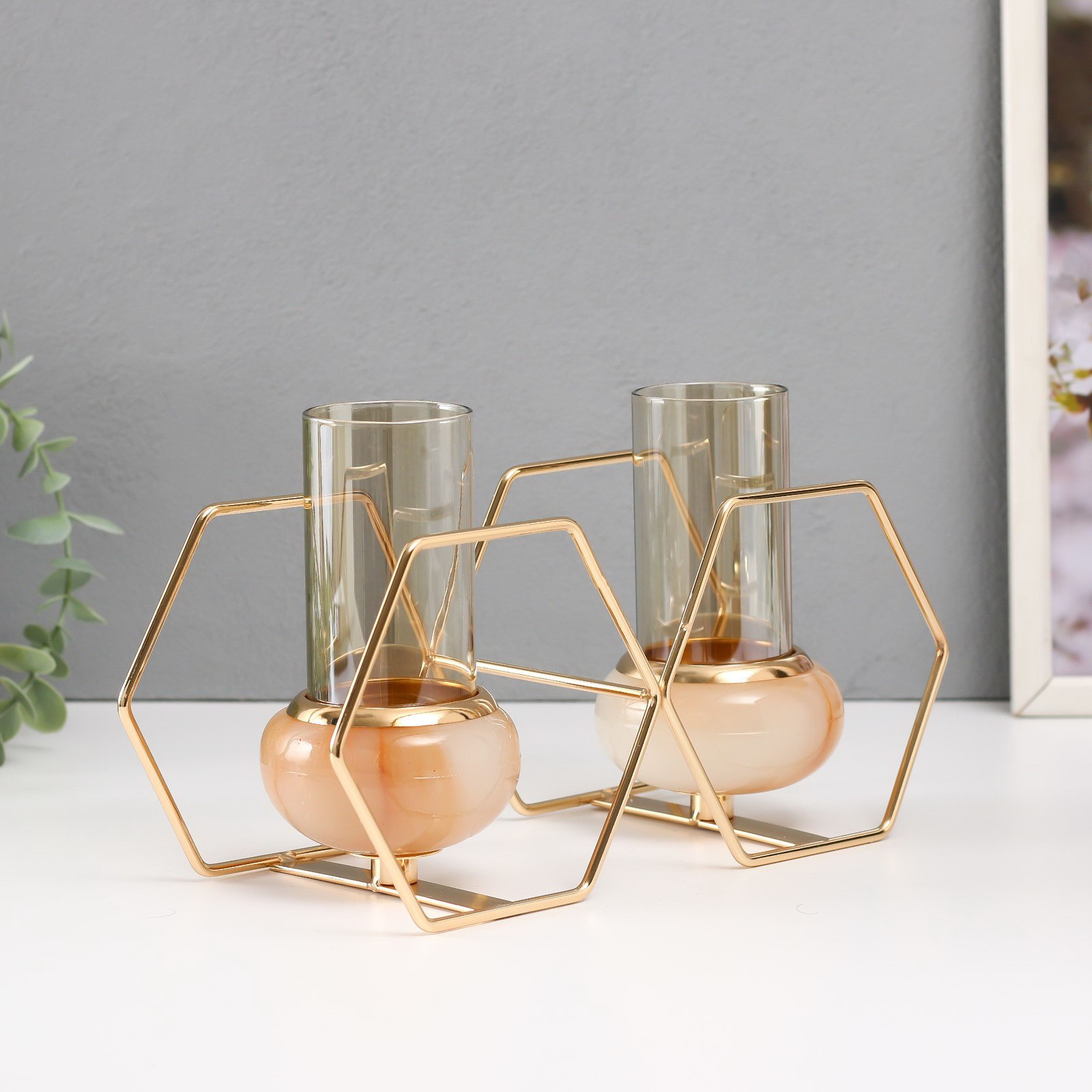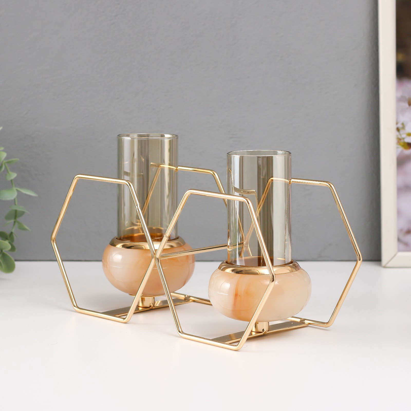 Подсвечник на 2 свечи "Шестигранники", металл, стекло, белый с золотом, 15.5x26.5x10.5 см, 26.5x10.5x15.5 см., Китай