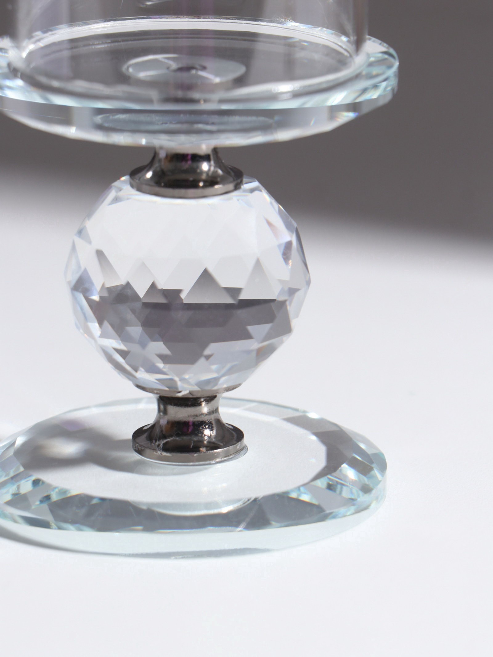 Стеклянный подсвечник на 1 свечу "Кристалл шар", чёрные вставки, 14x7x7 см, 7x14x7 см., Китай