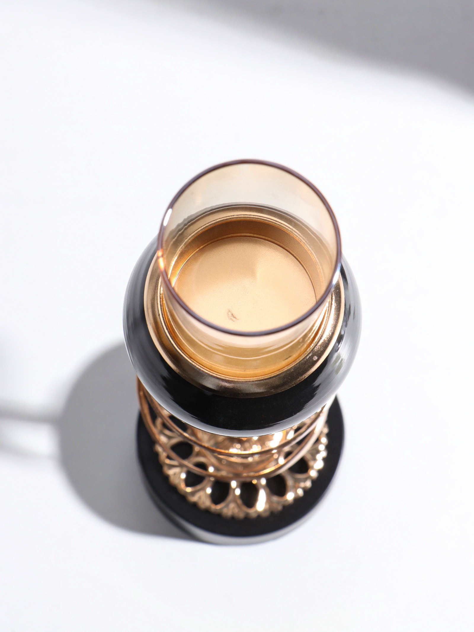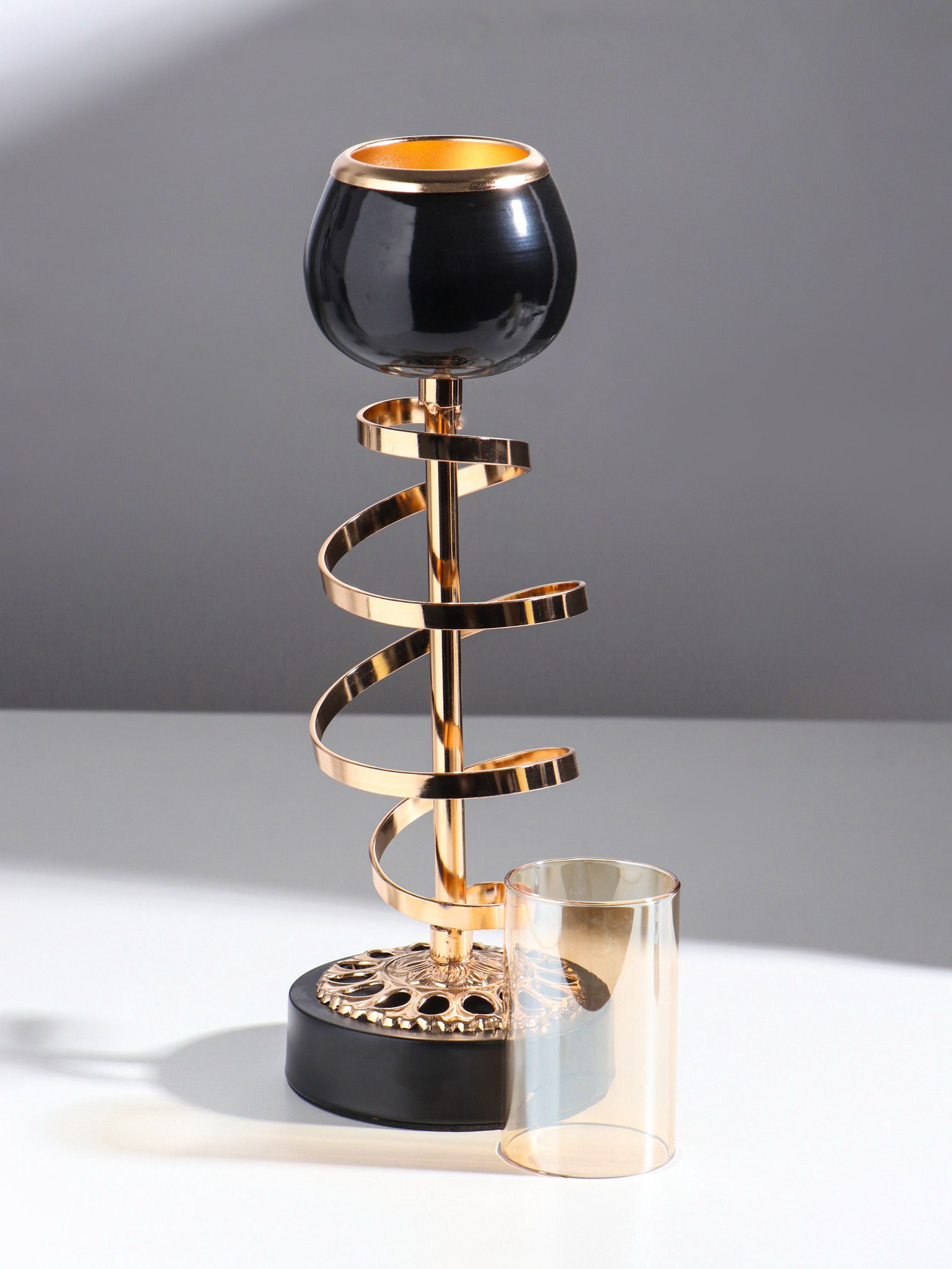 Металлический подсвечник на 1 свечу "Спираль", золото на чёрном мраморе, 28x9.5x9.5 см, 9.5x9.5x28 см., Китай