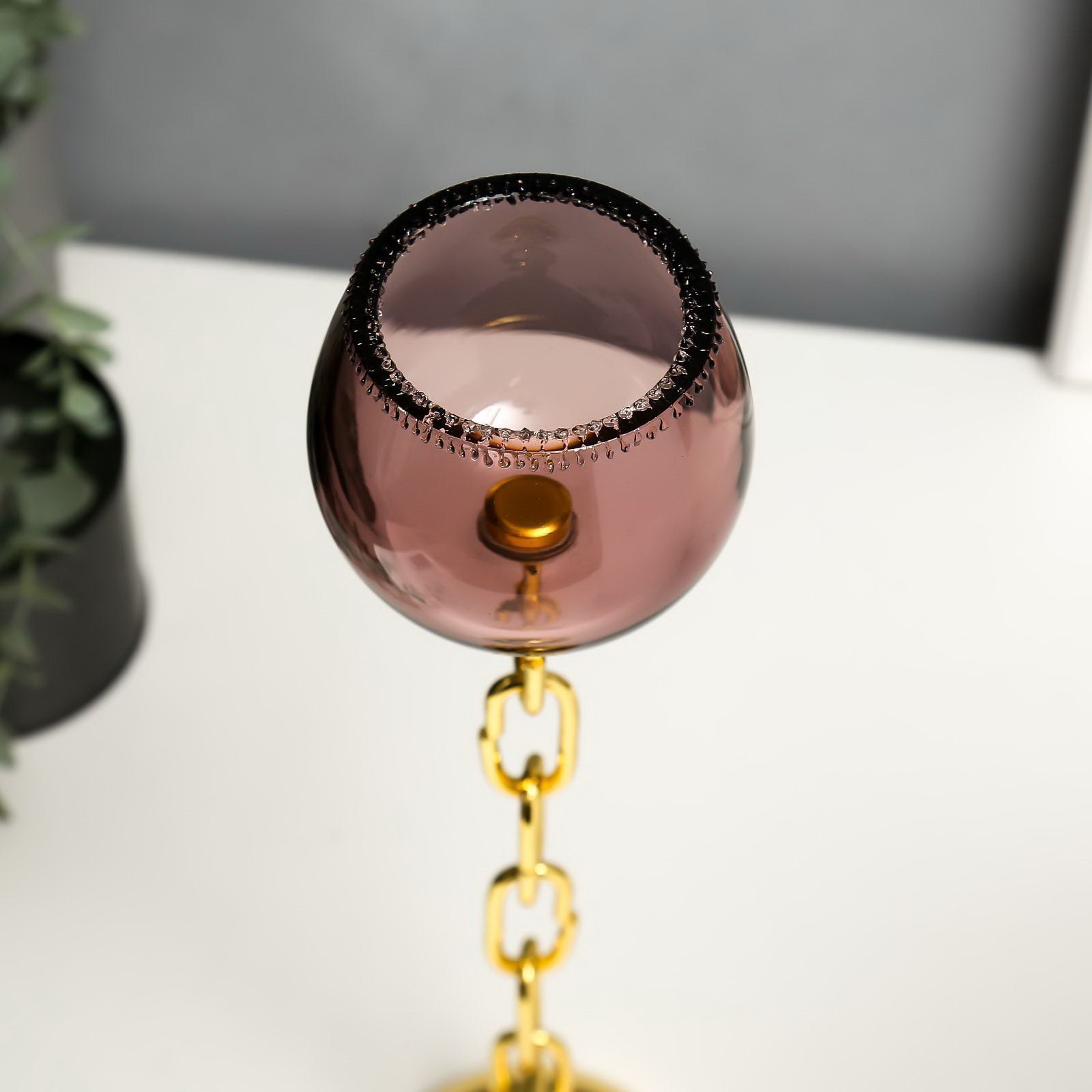 Стеклянный подсвечник на 1 свечу "Бокал и цепь", розовый и золото, 32x9x9 см, 9x9x32 см., Китай