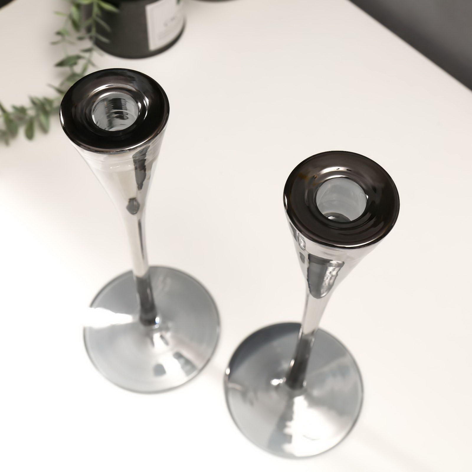 Подсвечник стекло "Узкий бокал" чёрная дымка набор 2 шт 28.5х10.5х10.5 см, 10.5x10.4x28 см., Китай