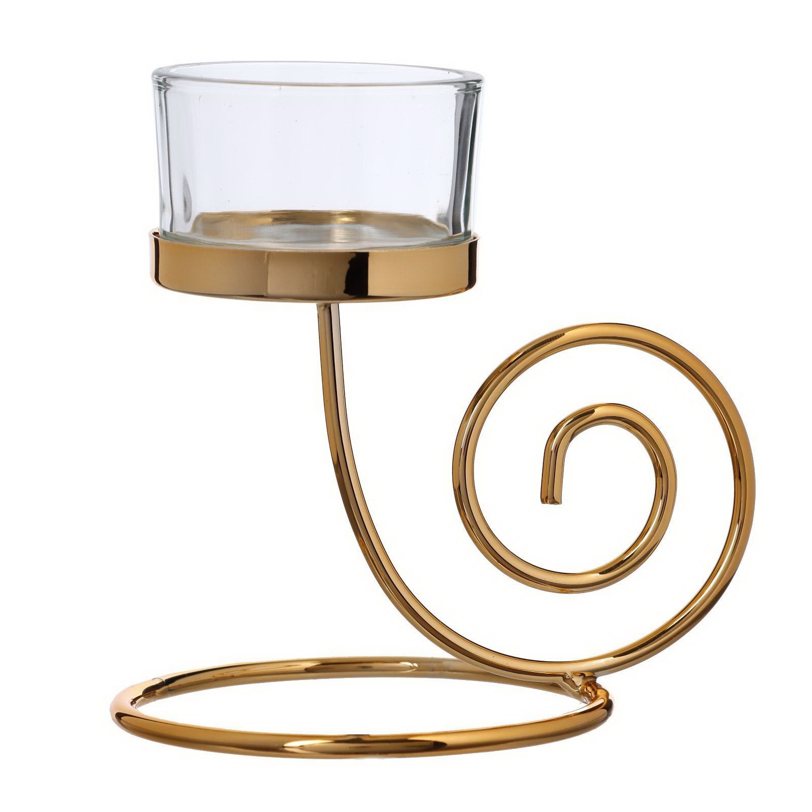 Подсвечник на 1 свечу "Спиралька", металл, стекло, золото, 12.5x9.8x8 см, 9.8x8x12.5 см., Китай