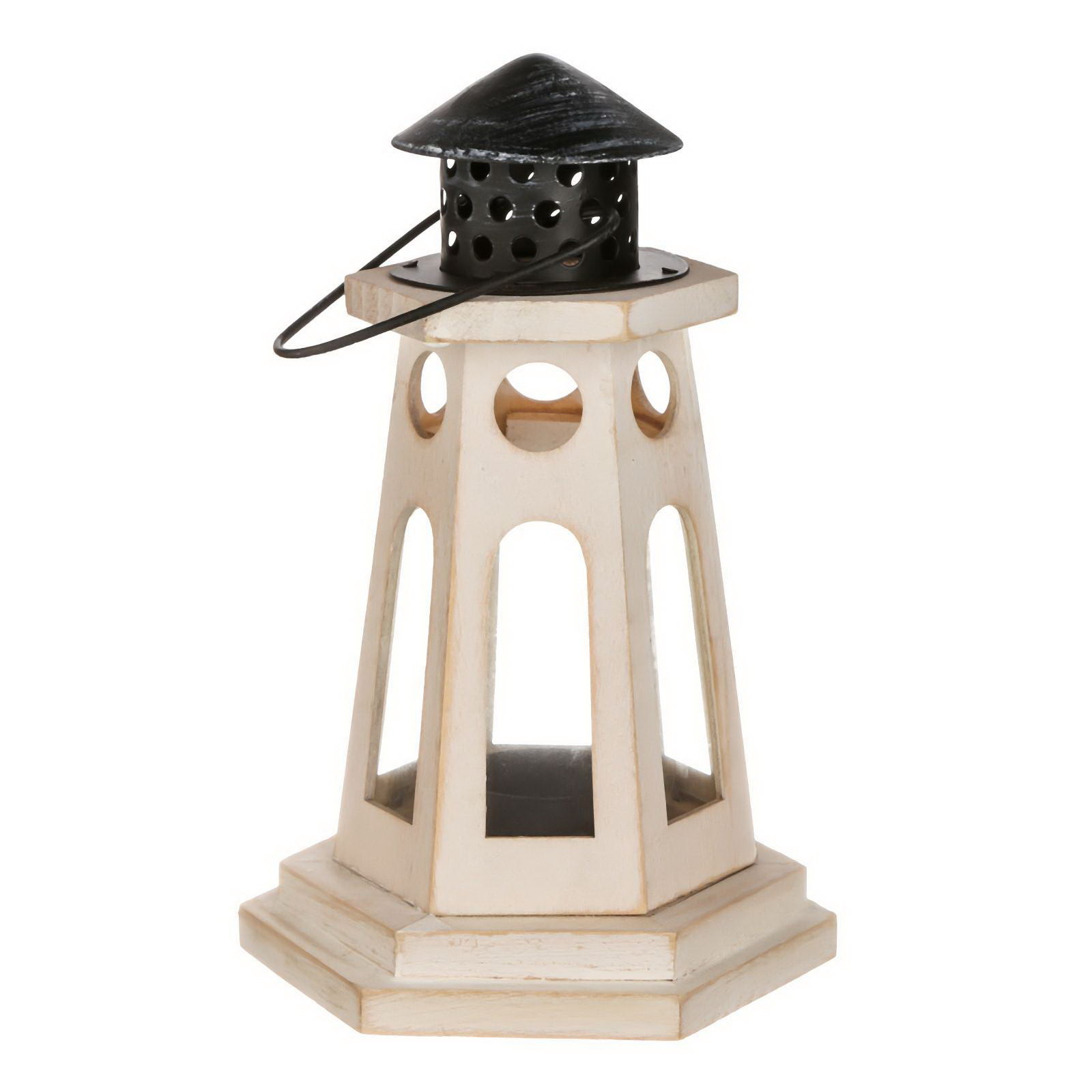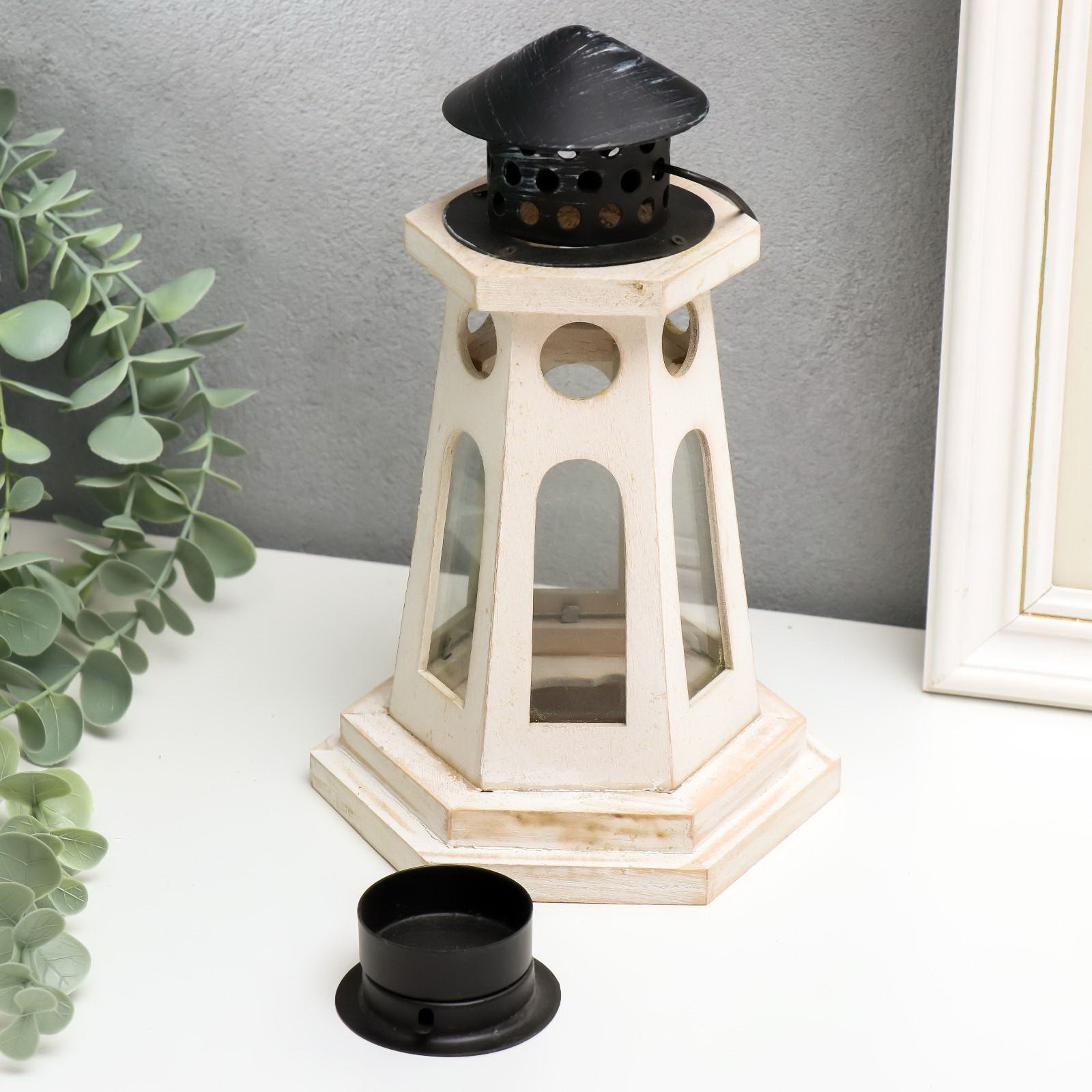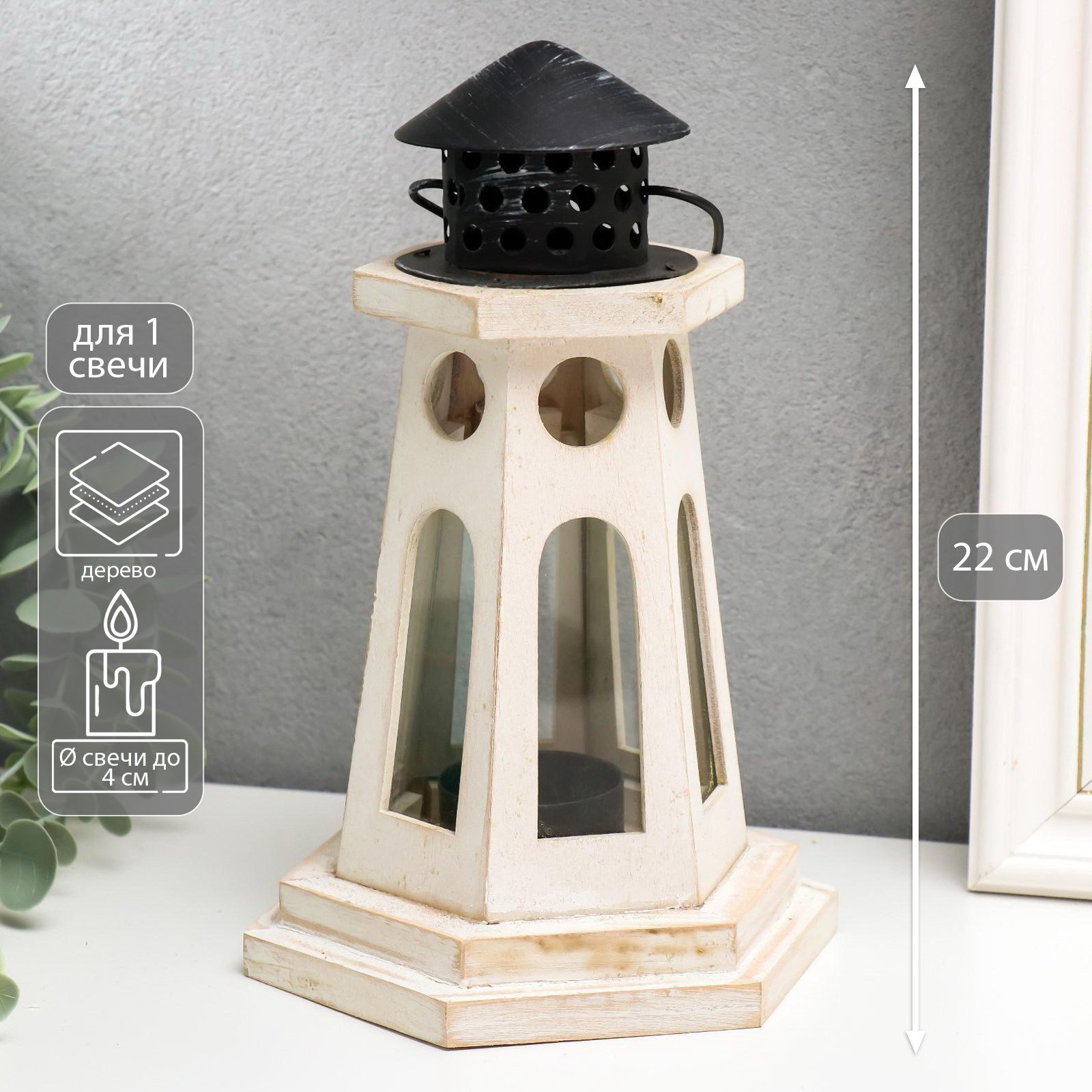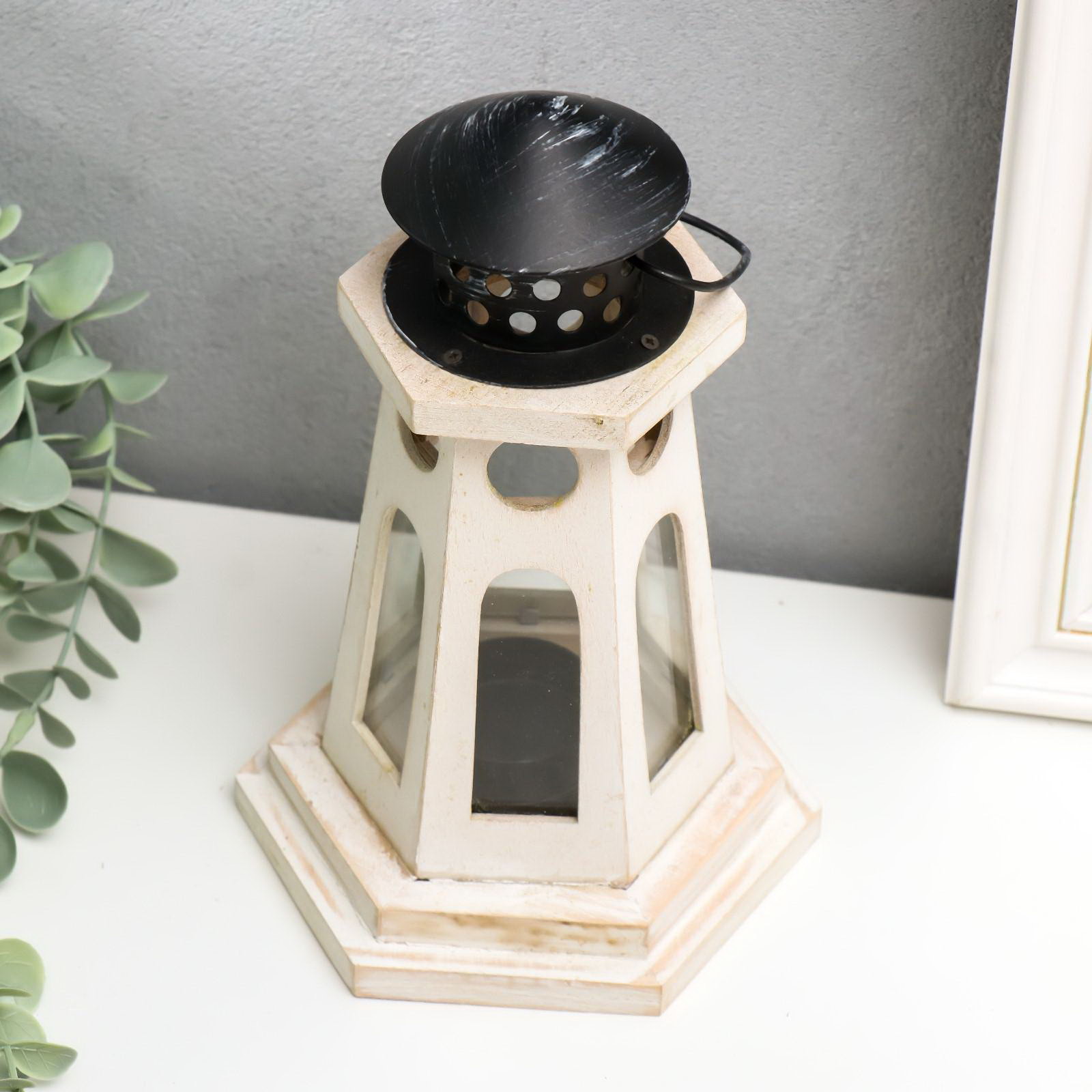 Деревянный подсвечник-фонарь на 1 свечу "Маяк", белый, 22x13.8x12.8 см, 13.8x12.8x22 см., Китай