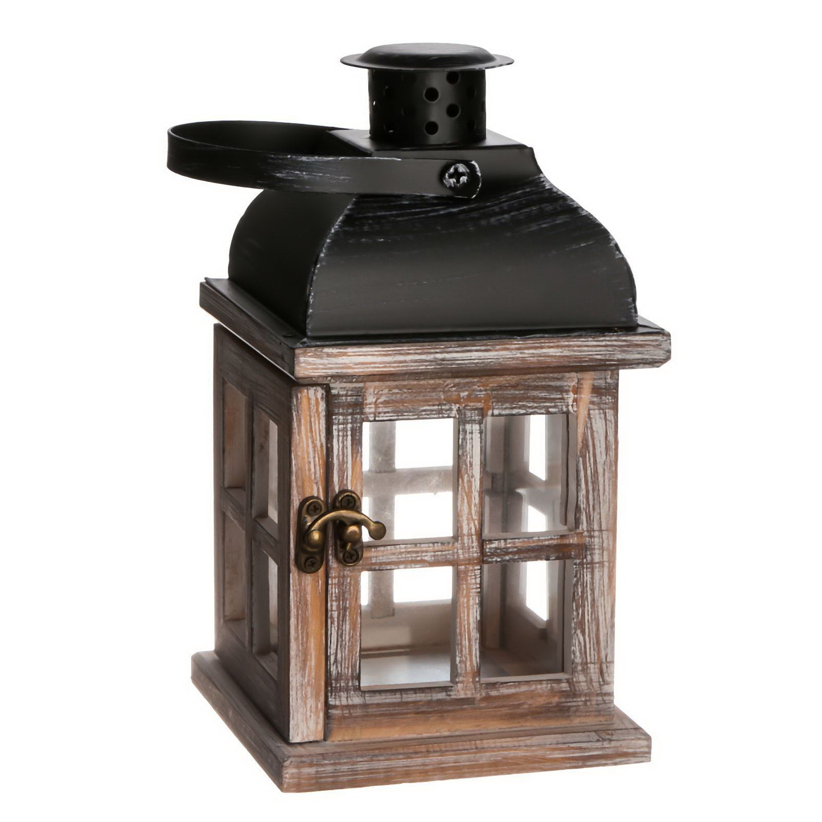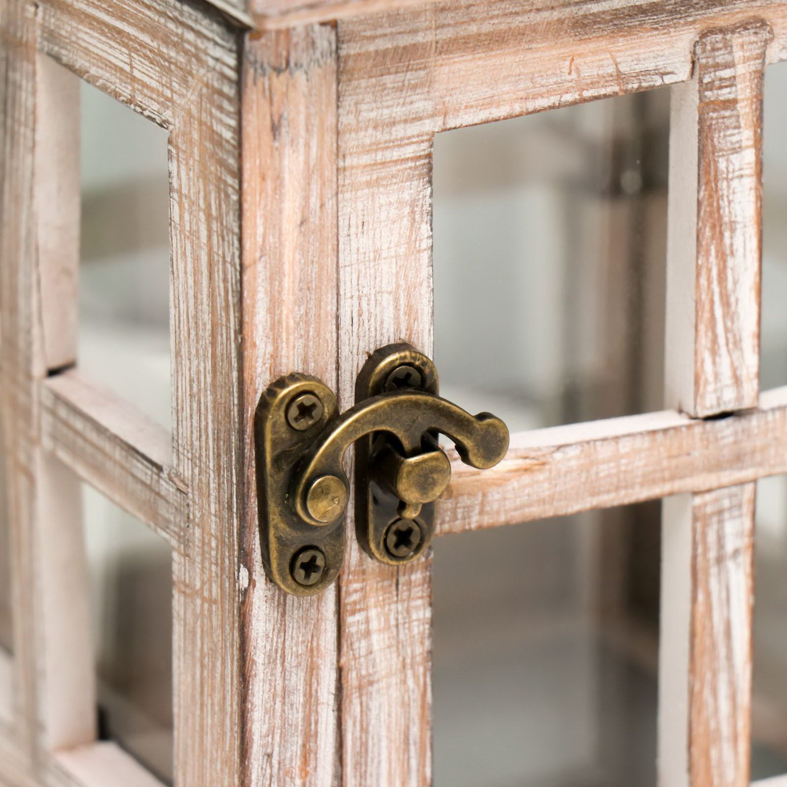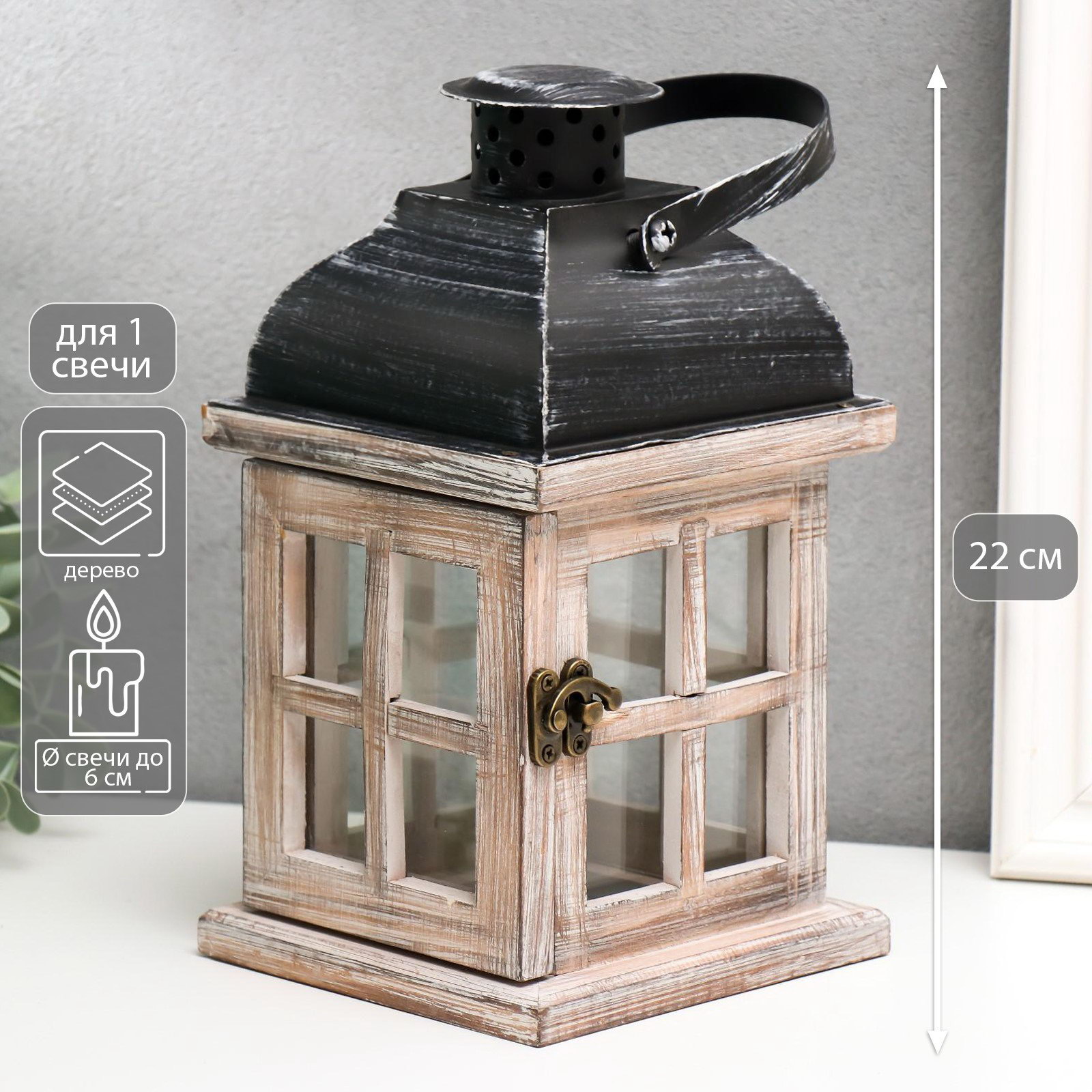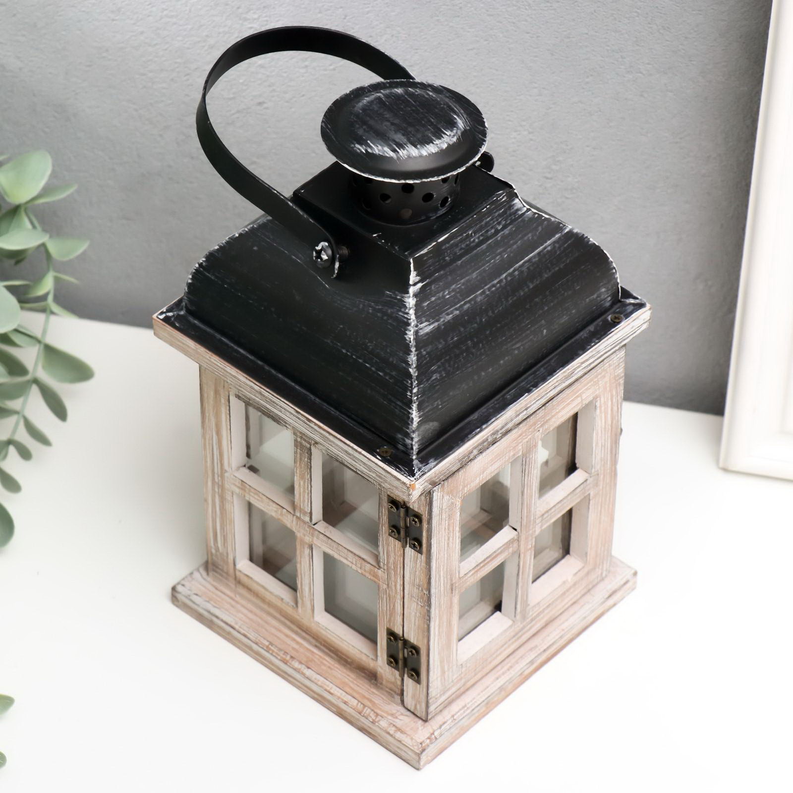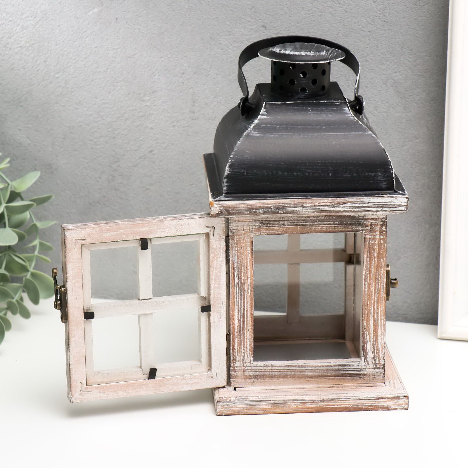 Деревянный подсвечник-фонарь на 1 свечу "Окошки", состаренный белый, 22x11.5x11.5 см, 11.5x11.5x22 см., Китай