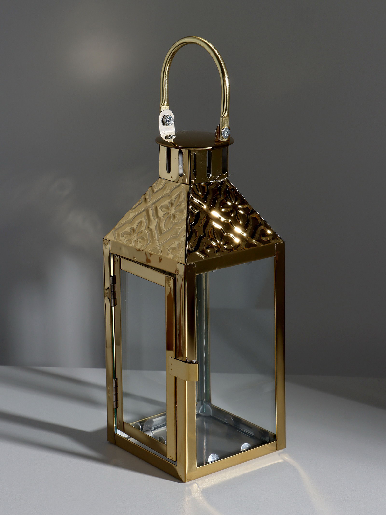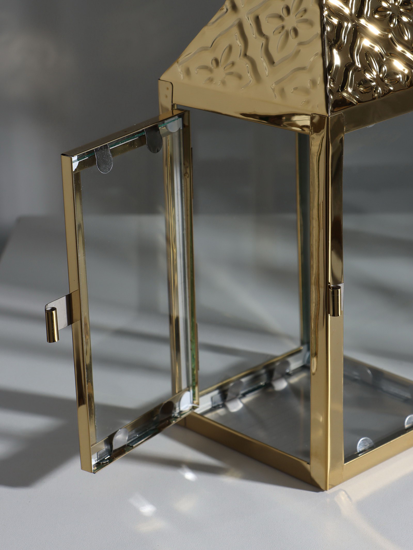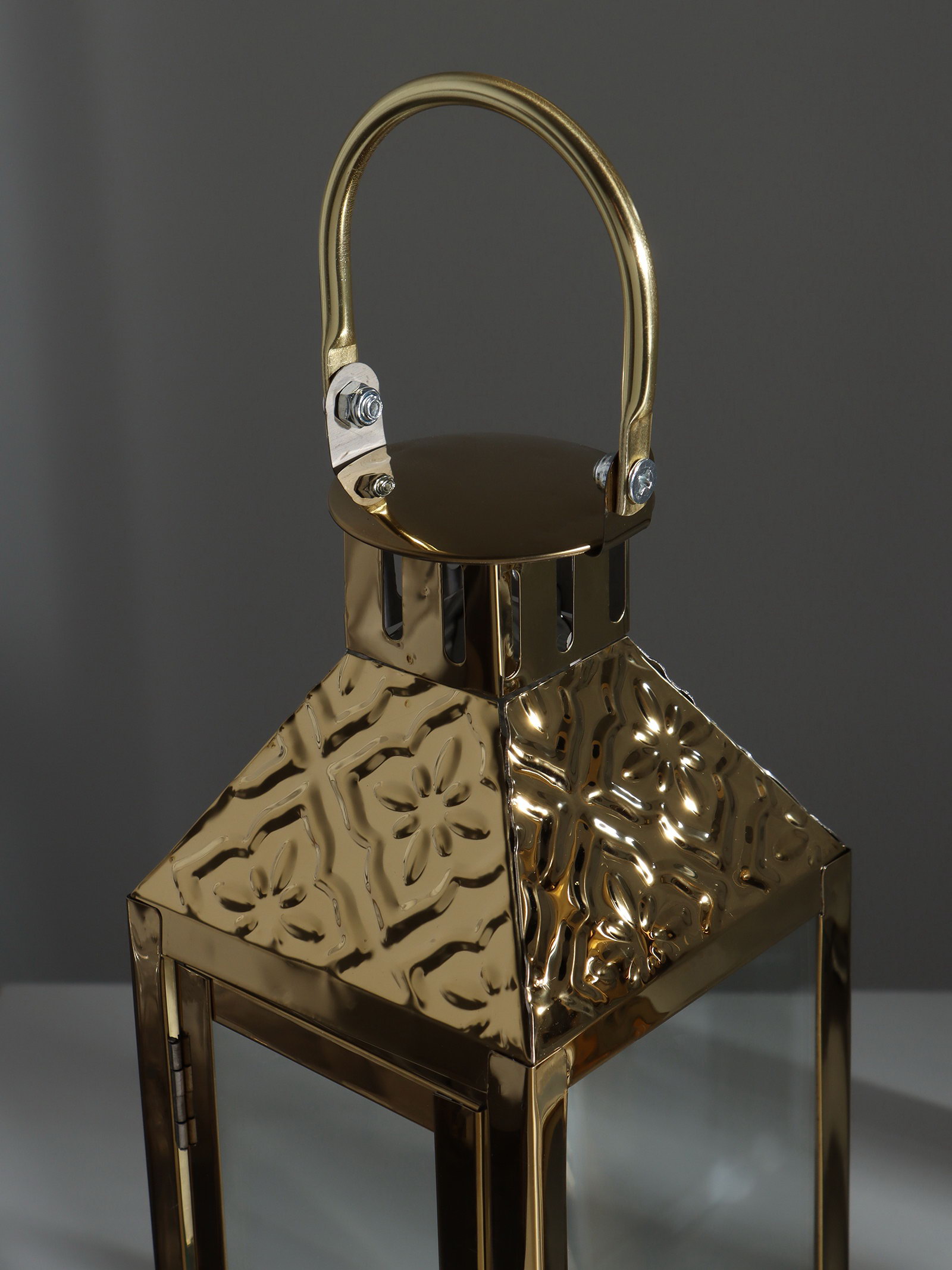 Подсвечник-фонарь на 1 свечу "Ромбы", золото, набор 3 шт., 55x18x18 см; 37.5x14.5x14.5 см; 26x10x10 см, 18x18x55 см., Китай