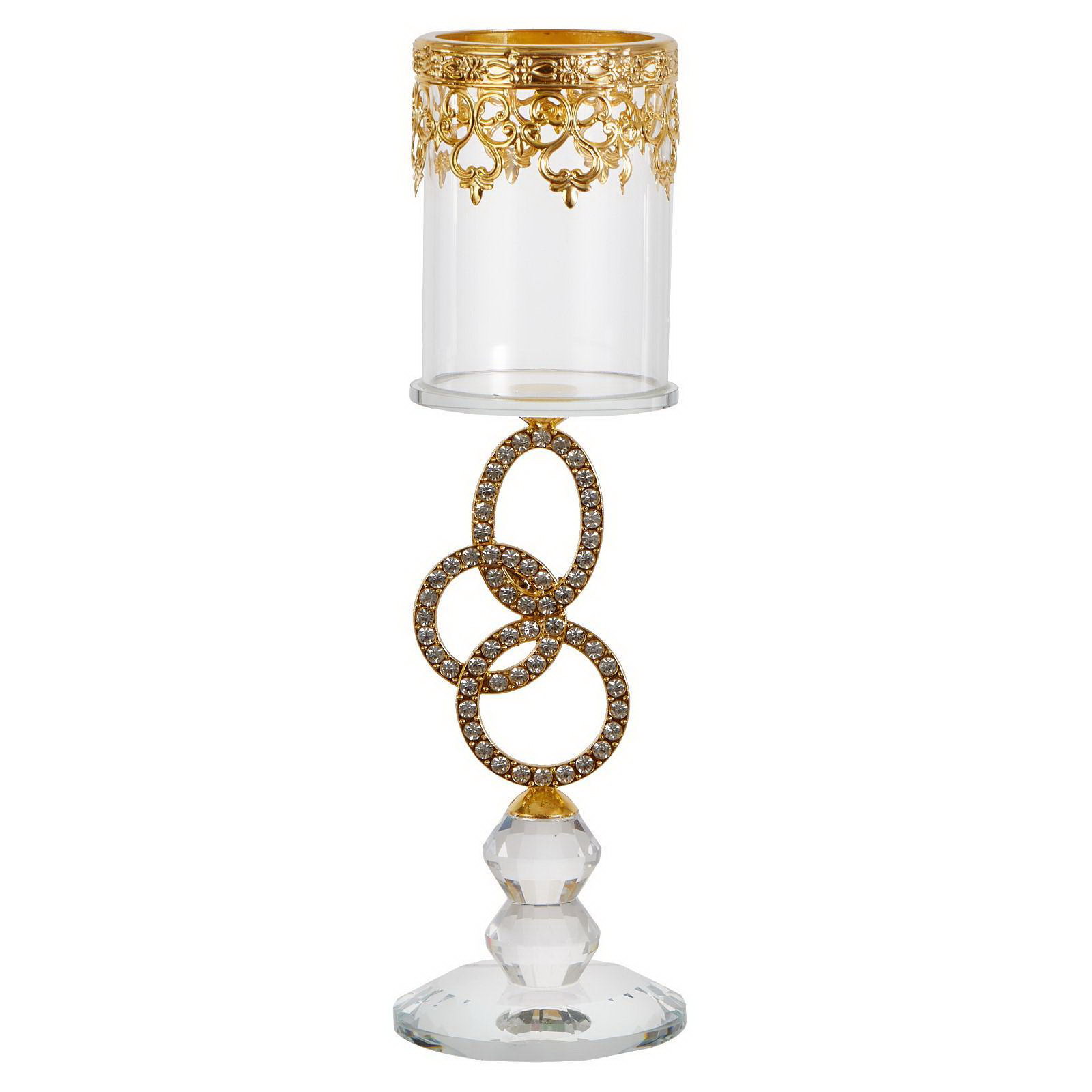 Стеклянный подсвечник на 1 свечу "Сплетение колец и восточный узор", золото, стразы, 25.5x8x8 см, 6.8x27x6.8 см., Китай