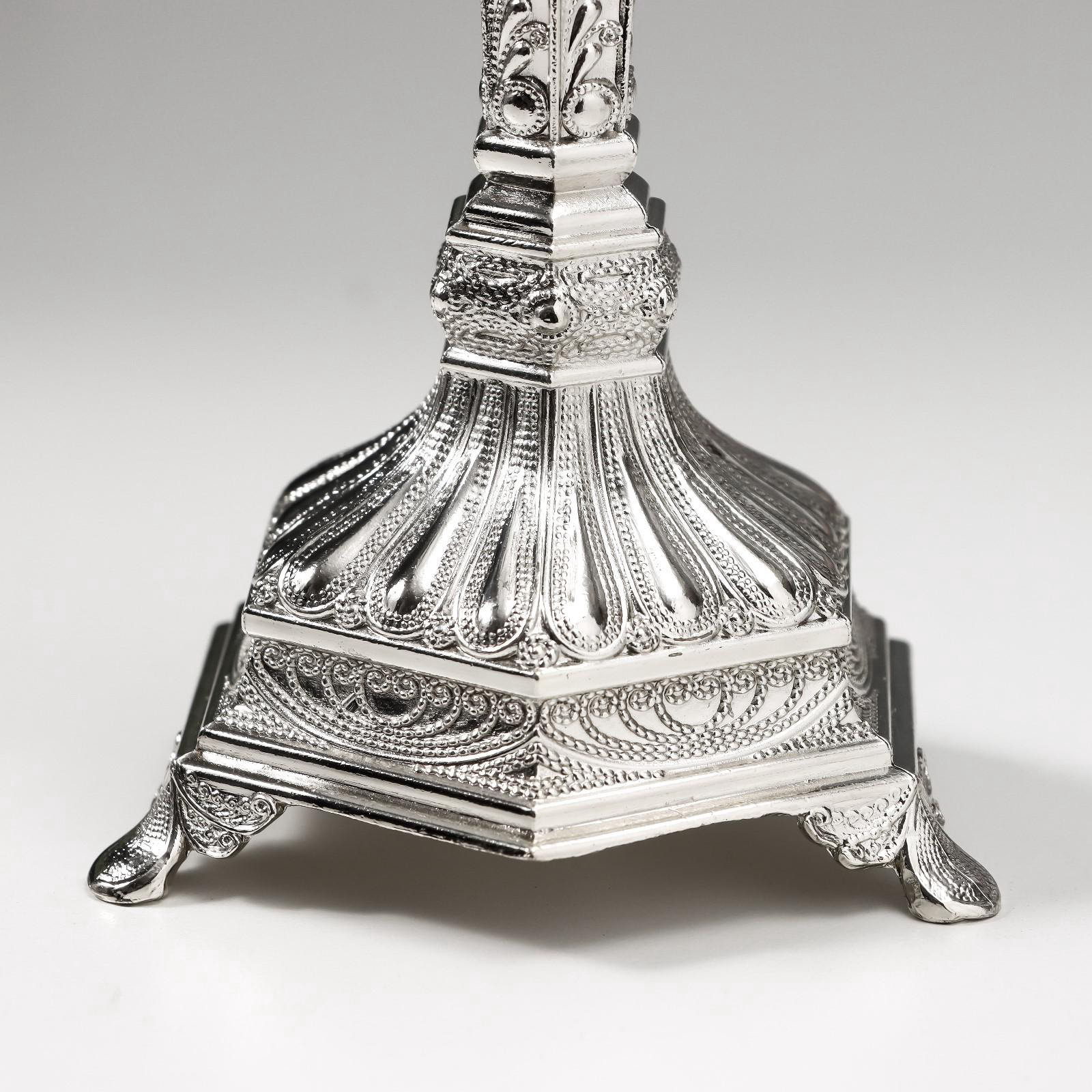 Металлический подсвечник на 1 свечу "Узорный", серебро, 19.8x8x8 см, 8x8x19.8 см., Китай