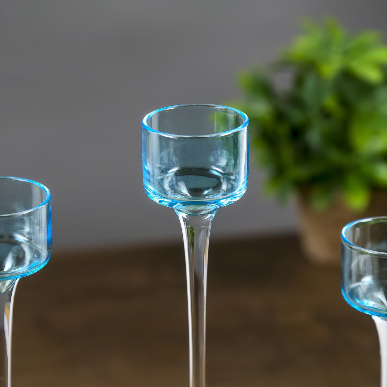 Стеклянный подсвечник на 1 свечу "Прозрачность мыслей", набор 3 шт., синий, h=26 см, 23 см, 20 см, 23x26x20 см., Китай