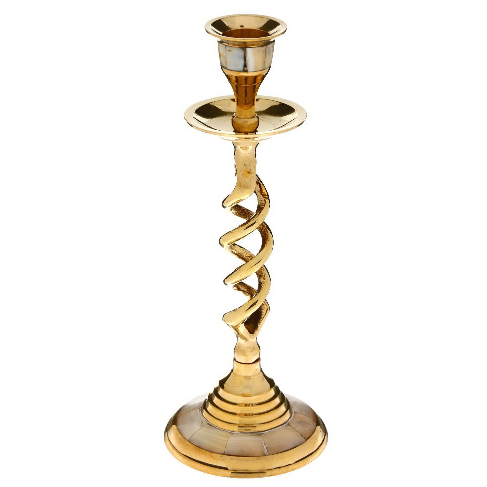 Подсвечник на 1 свечу "Спираль", 20.5 см, с перламутром, 8x8x20 см., Индия