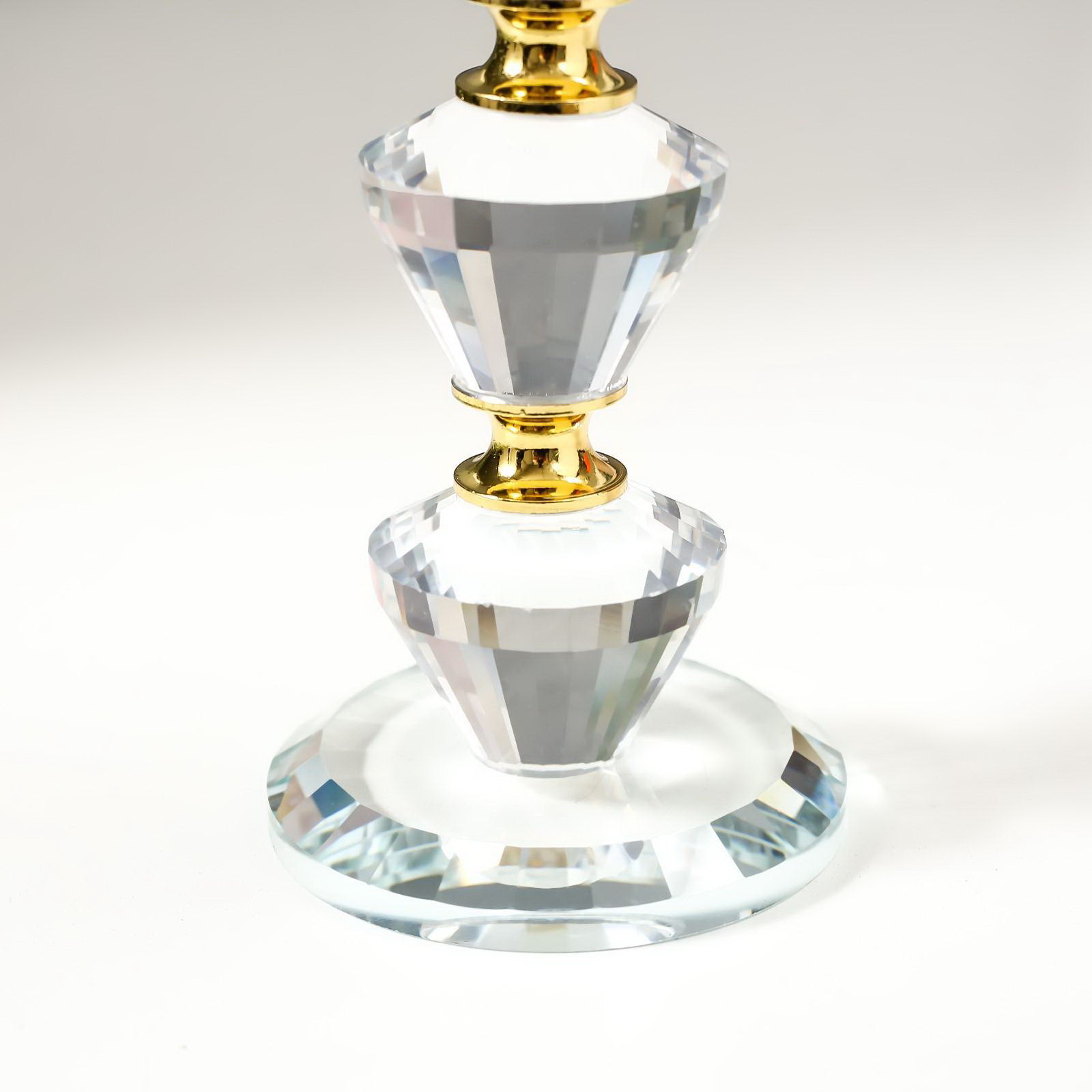 Стеклянный подсвечник на 1 свечу "Золотые камешки", ножка с кристаллами, 21x7.5x7.5 см, 7.5x7.5x21 см., Китай