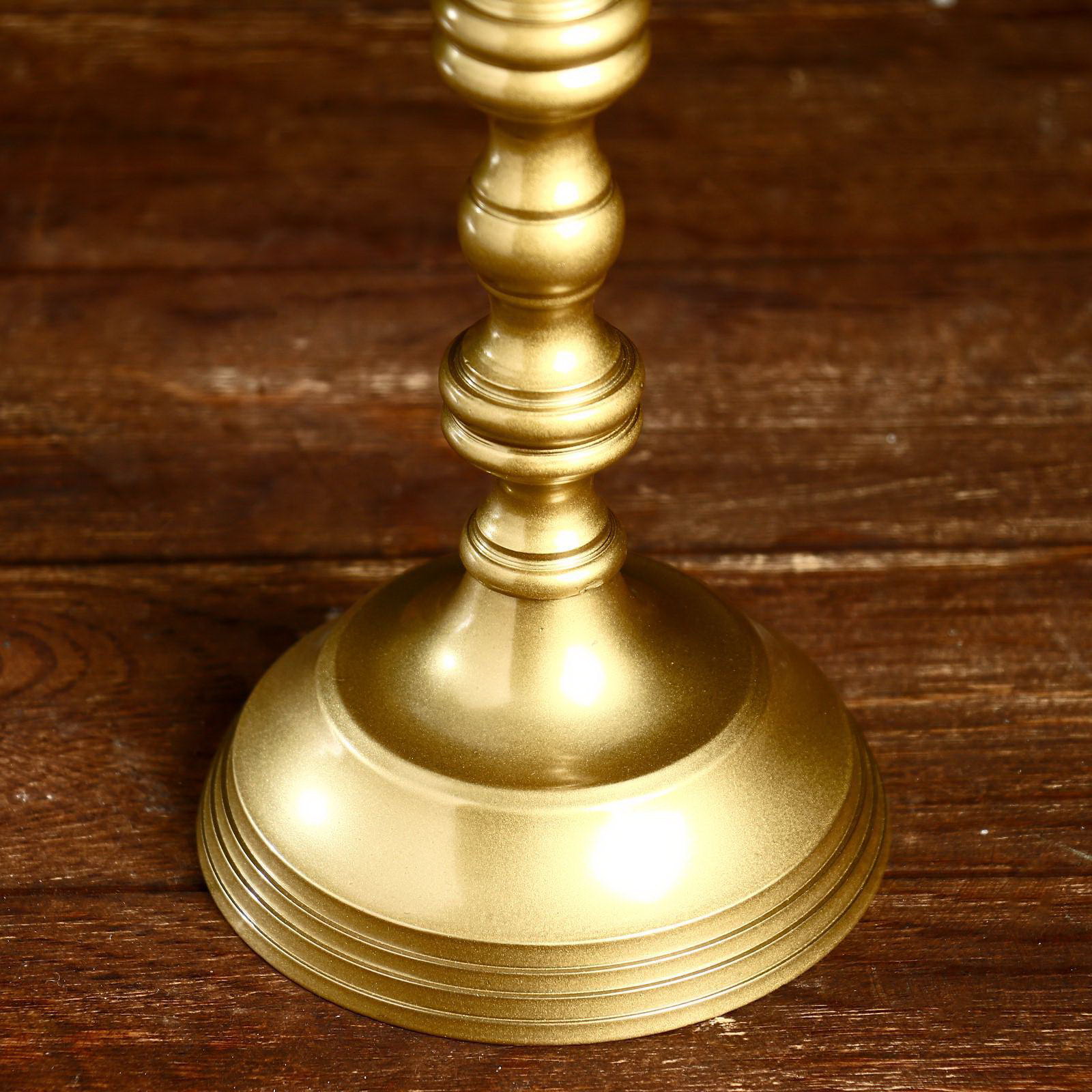 Размер упаковки: 12 x 28 x 12 см. Набор: Нет Набор: Нет tnved: 9405500000 Количество рожков: 1 Цвет: Золотистый Свеча в комплекте: Нет Диаметр под свечу, см: 2 Высота, см: 28 | ||