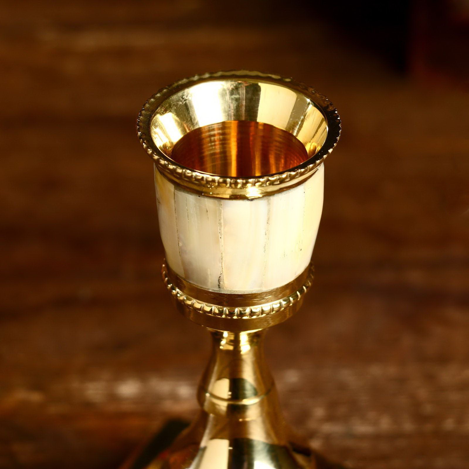 Подсвечник "Грааль", 7x7x11 см, латунь, перламутр, 7x7x10 см., Индия