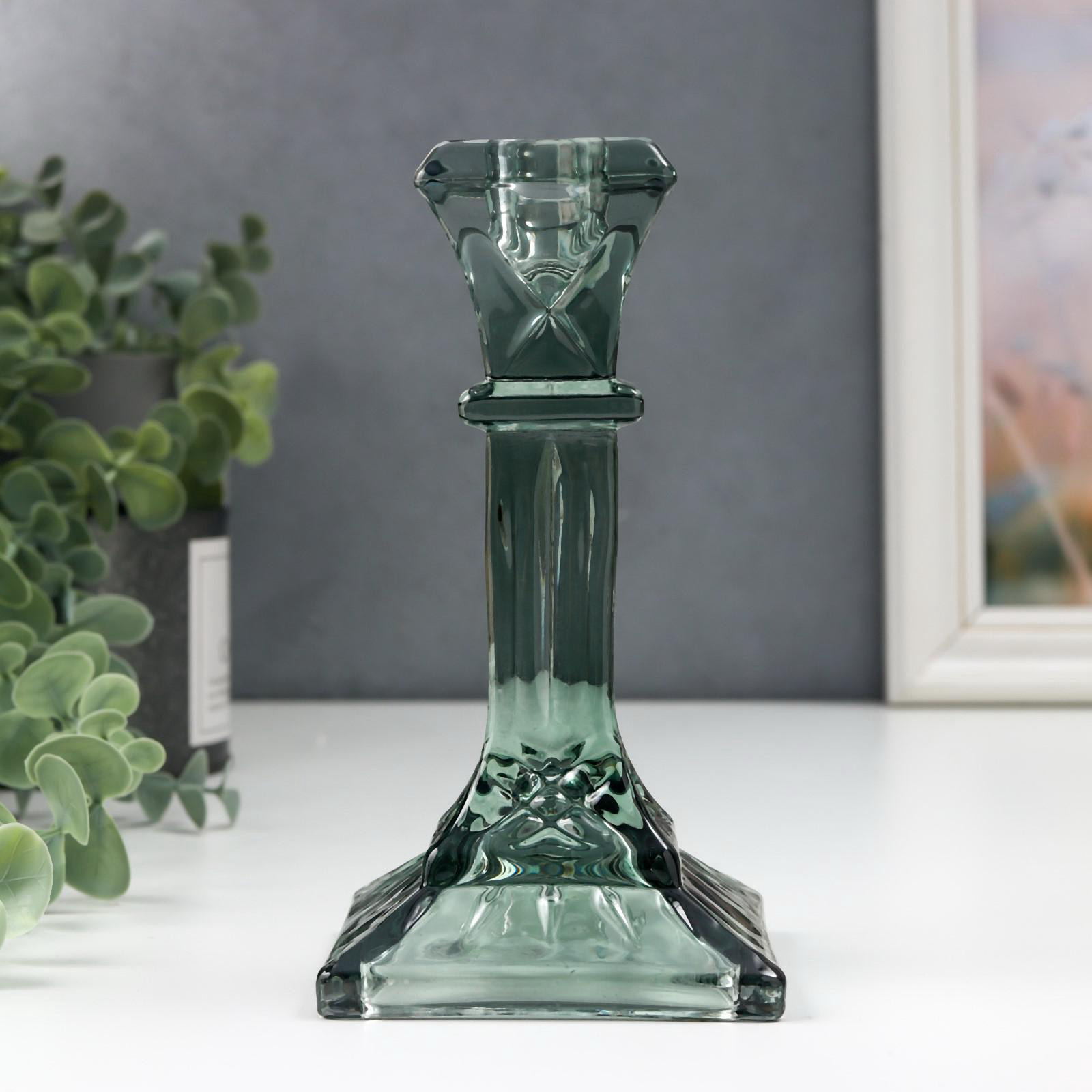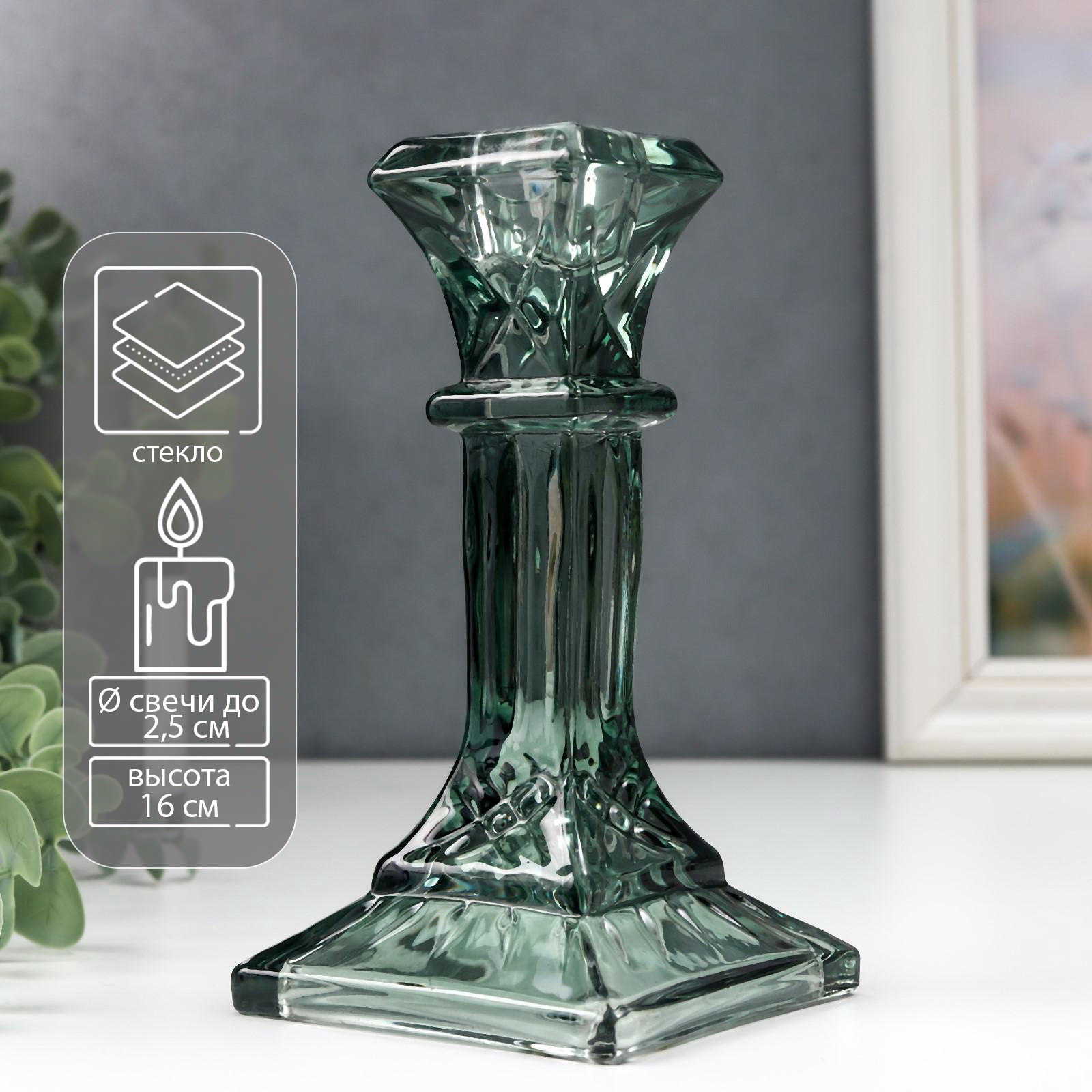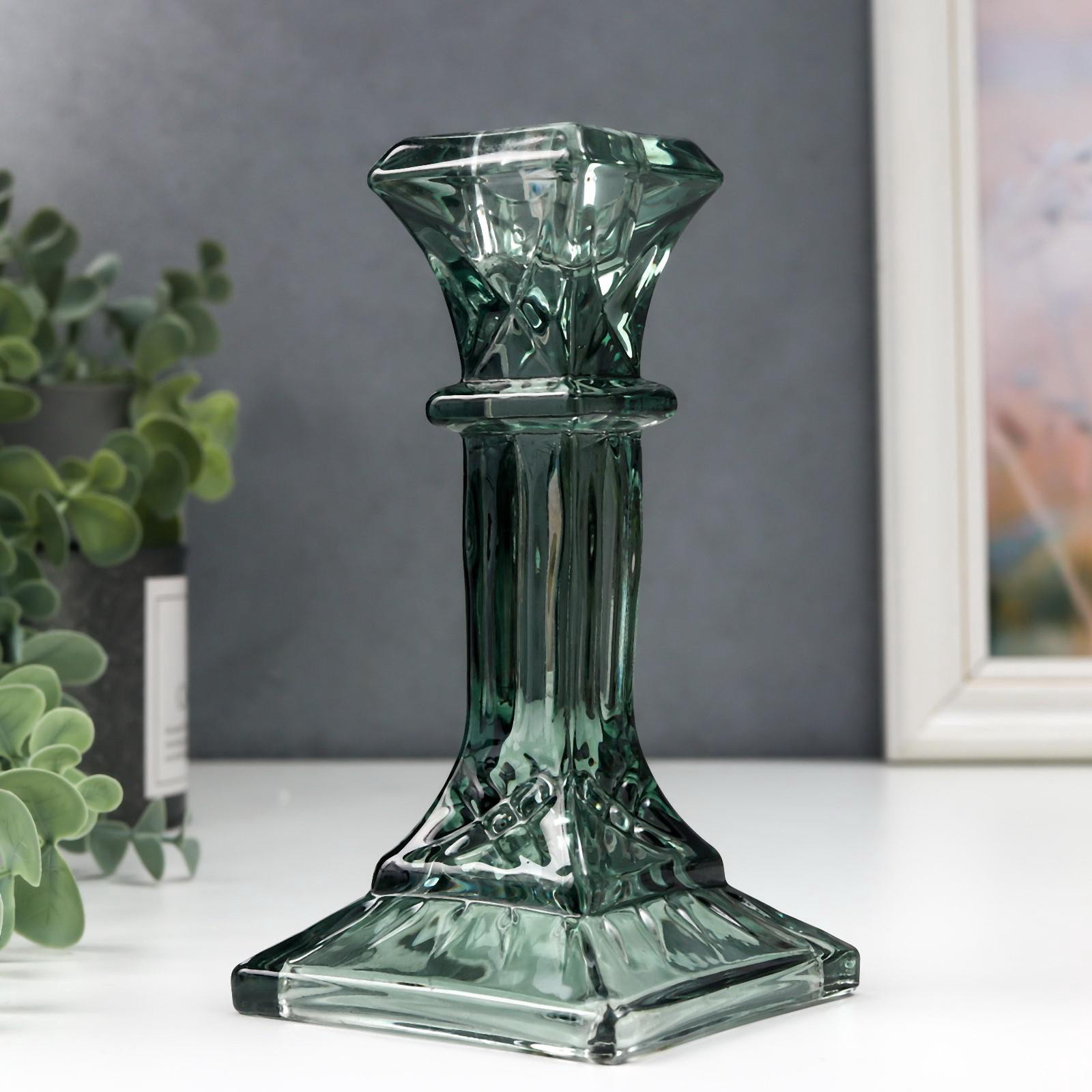 Стеклянный подсвечник на 1 свечу "Колонна прямоугольная", зелёный прозрачный, 16x8.6x8.6 см, 8.6x8.6x16 см., Китай
