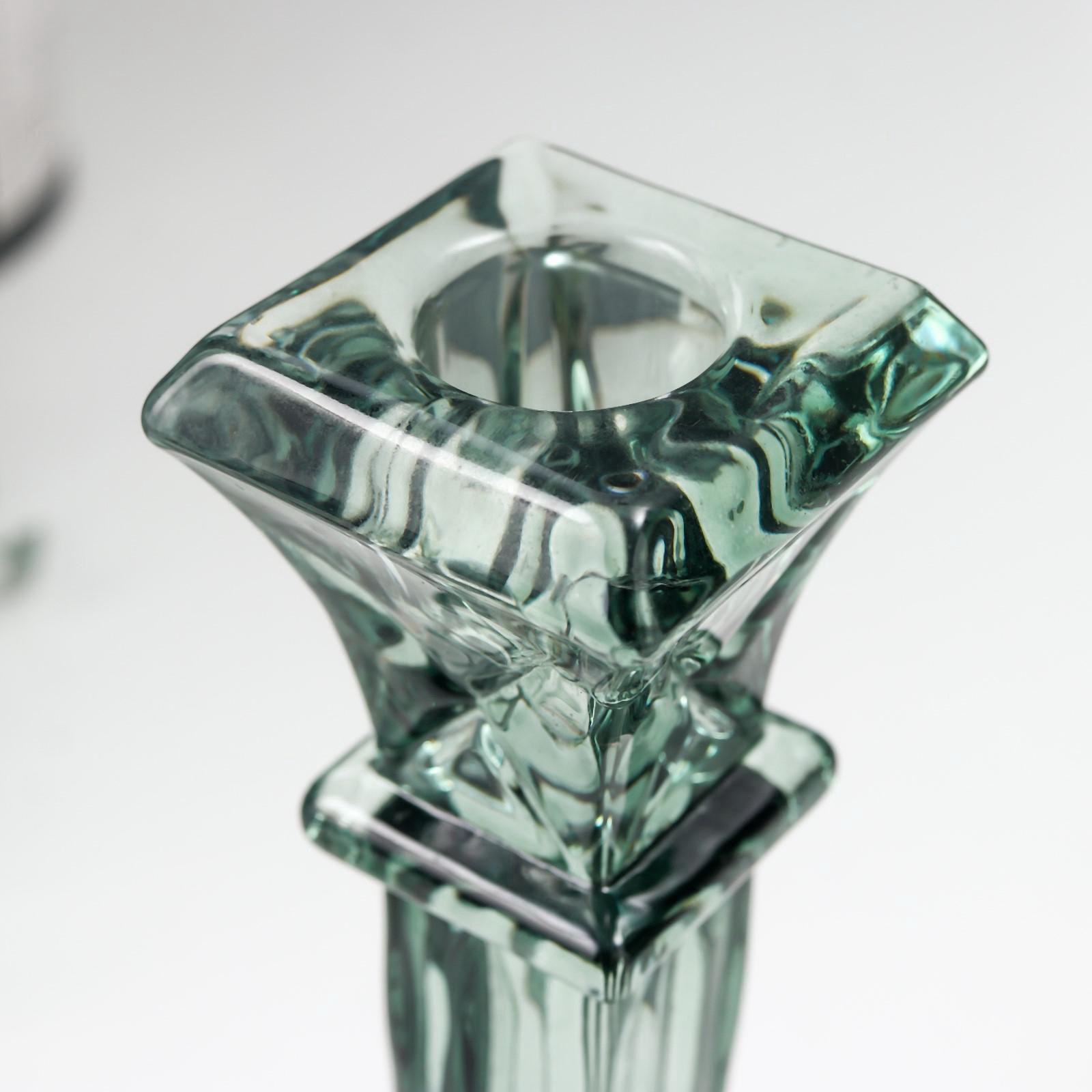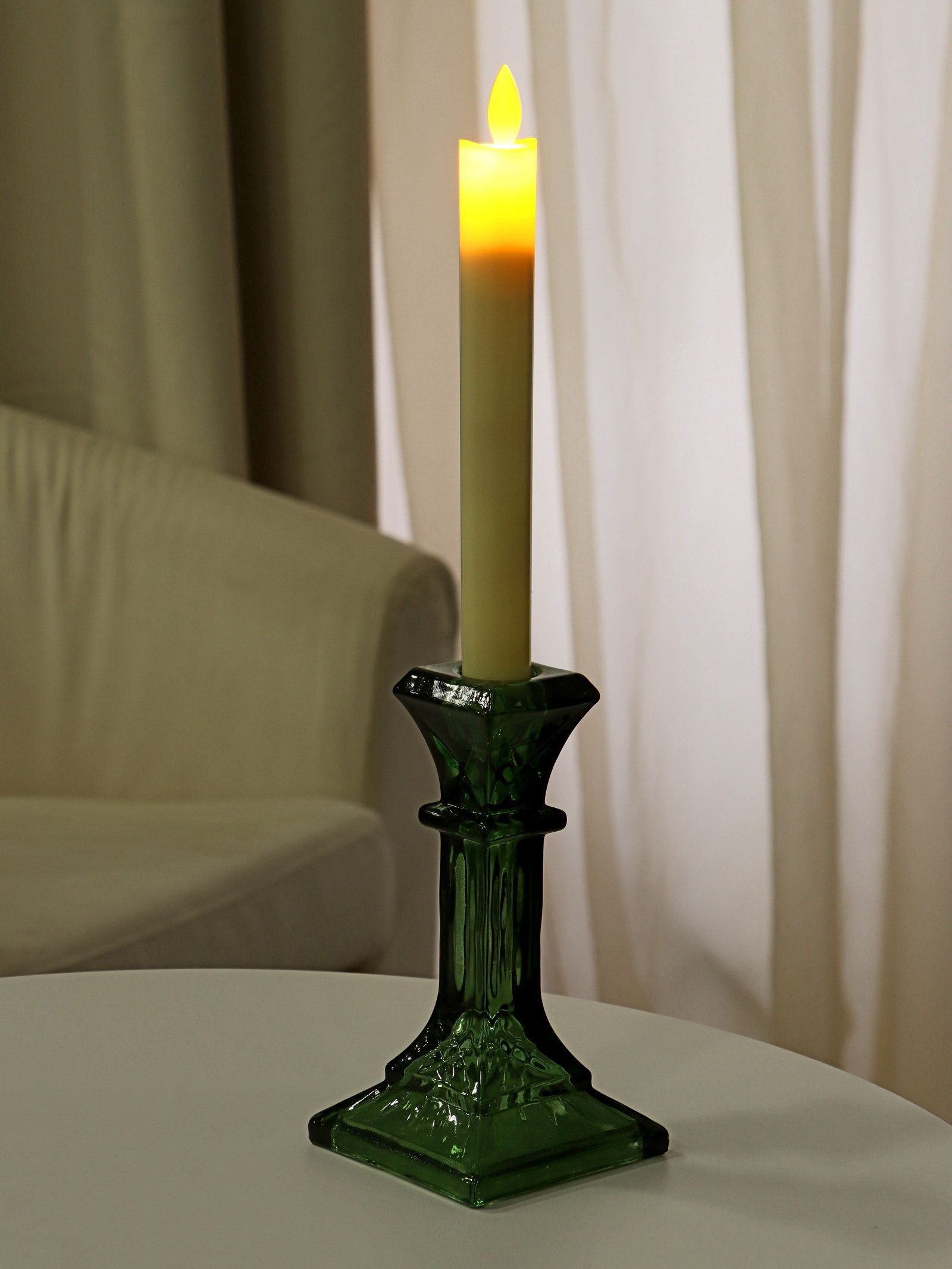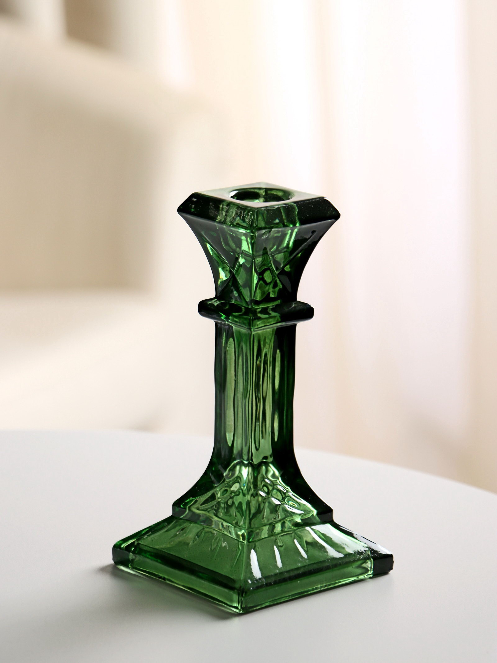 Стеклянный подсвечник на 1 свечу "Колонна прямоугольная", зелёный прозрачный, 16x8.6x8.6 см, 8.6x8.6x16 см., Китай