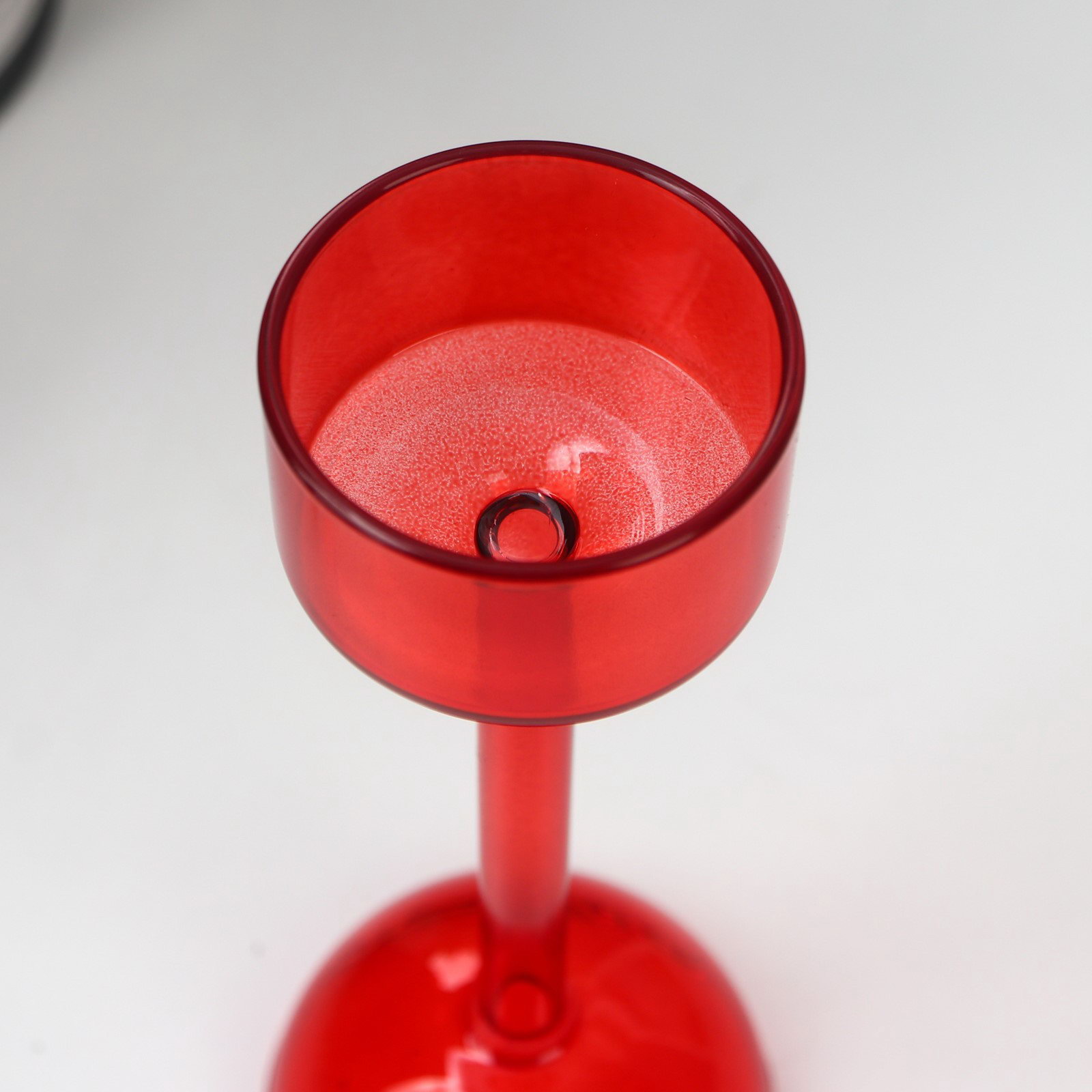 Стеклянный подсвечник на 1 свечу "Высокая ножка на шаре", красный, d до 4.7 см 14.5x6.5x6.5 см, 6.5x6.5x14.5 см., Китай
