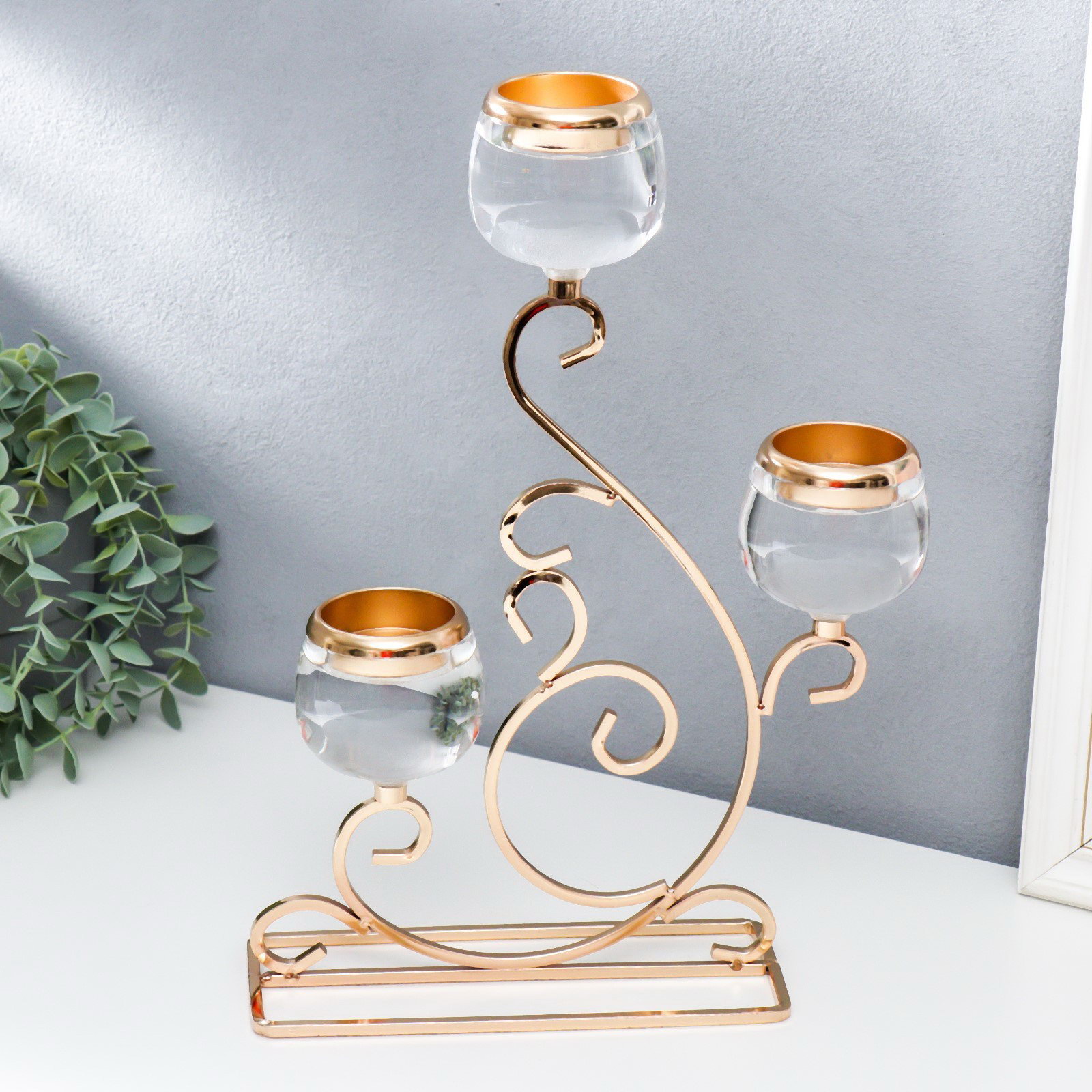 Подсвечник на 3 свечи "Гранде", металл, акрил, золото, 25x8x36 см, 8x25x36 см., Китай