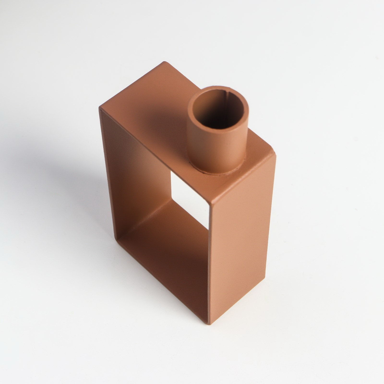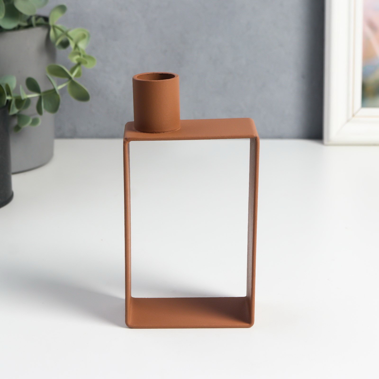 Металлический подсвечник на 1 свечу "Строгие линии", d=2 см, розовый, 13.5x4x7.2 см, 4x7.2x13.5 см., Китай