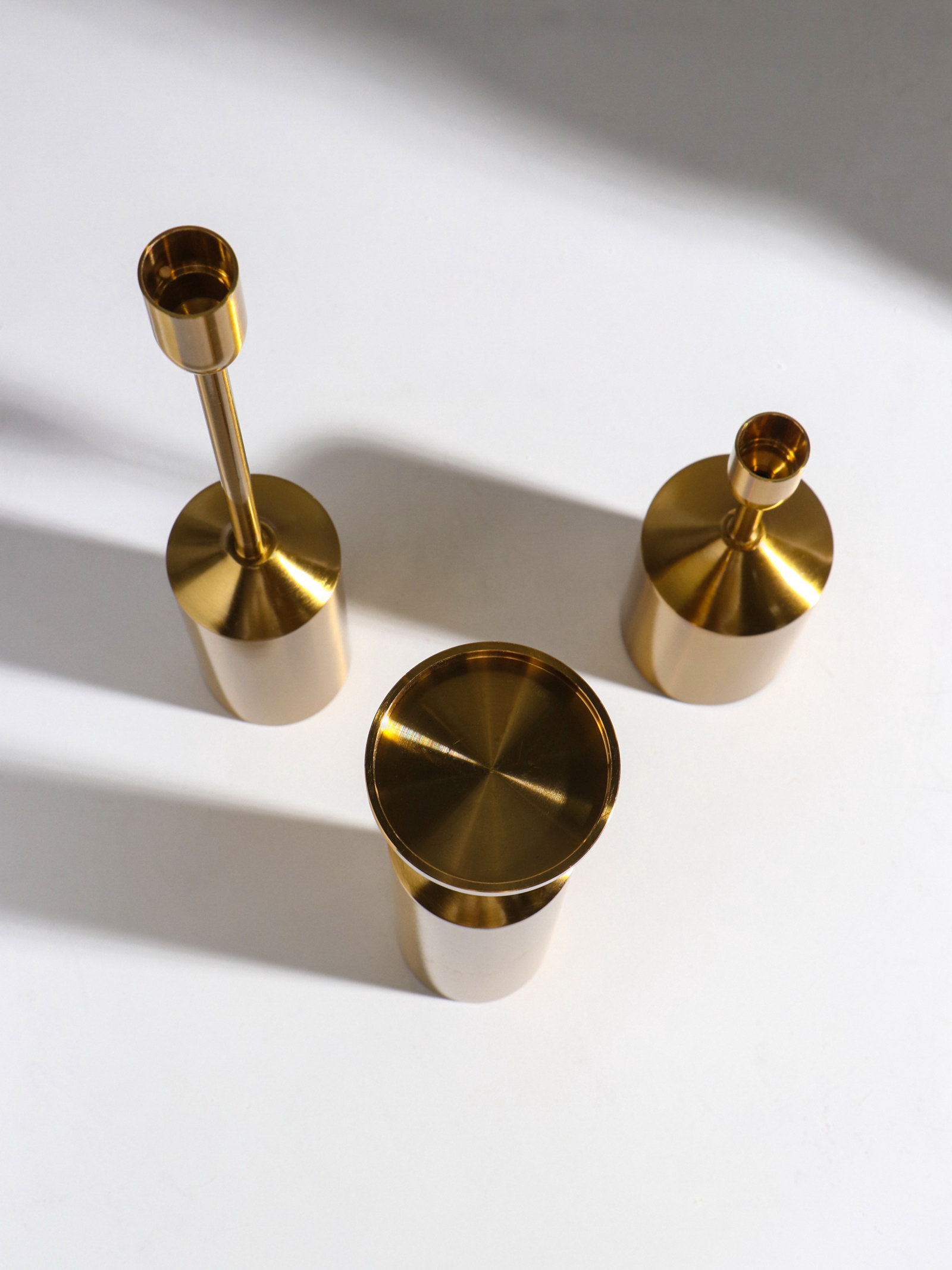 Металлический подсвечник на 1 свечу "Индастриал", набор 3 шт., золото, 20x7x7 см; 29x7x7 см; 41x6x6 см, 6x6x41 см., Китай