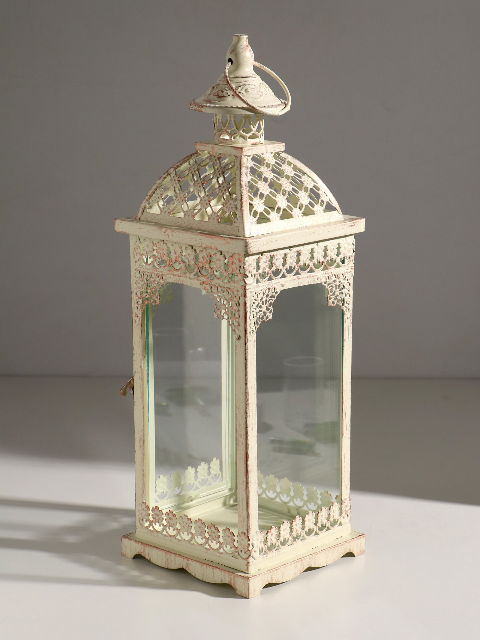 Набор подсвечников на 1 свечу "Фонарь - белые кружева", 2 шт., металл, белый 17x17x52, 13x13x39.5 см, 17x17x52 см., Китай