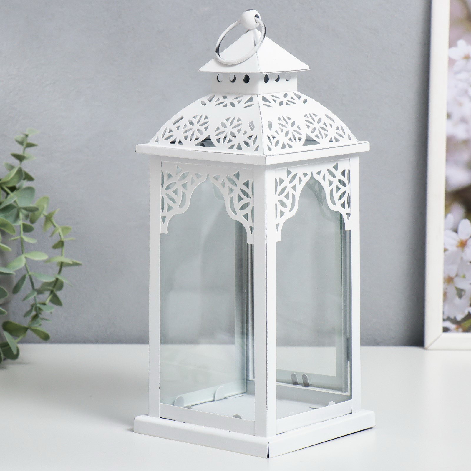 Металлический подсвечник "Фонарь - ажур", белый, 11.5x11.5x29 см, 11.5x29 см., Китай