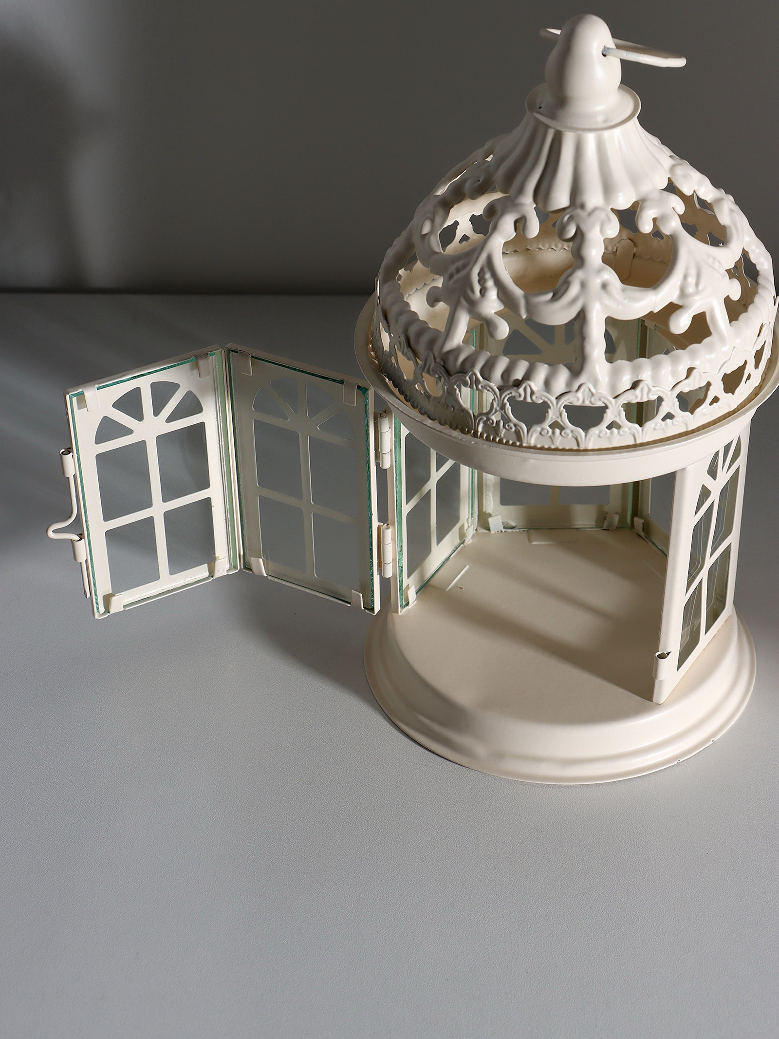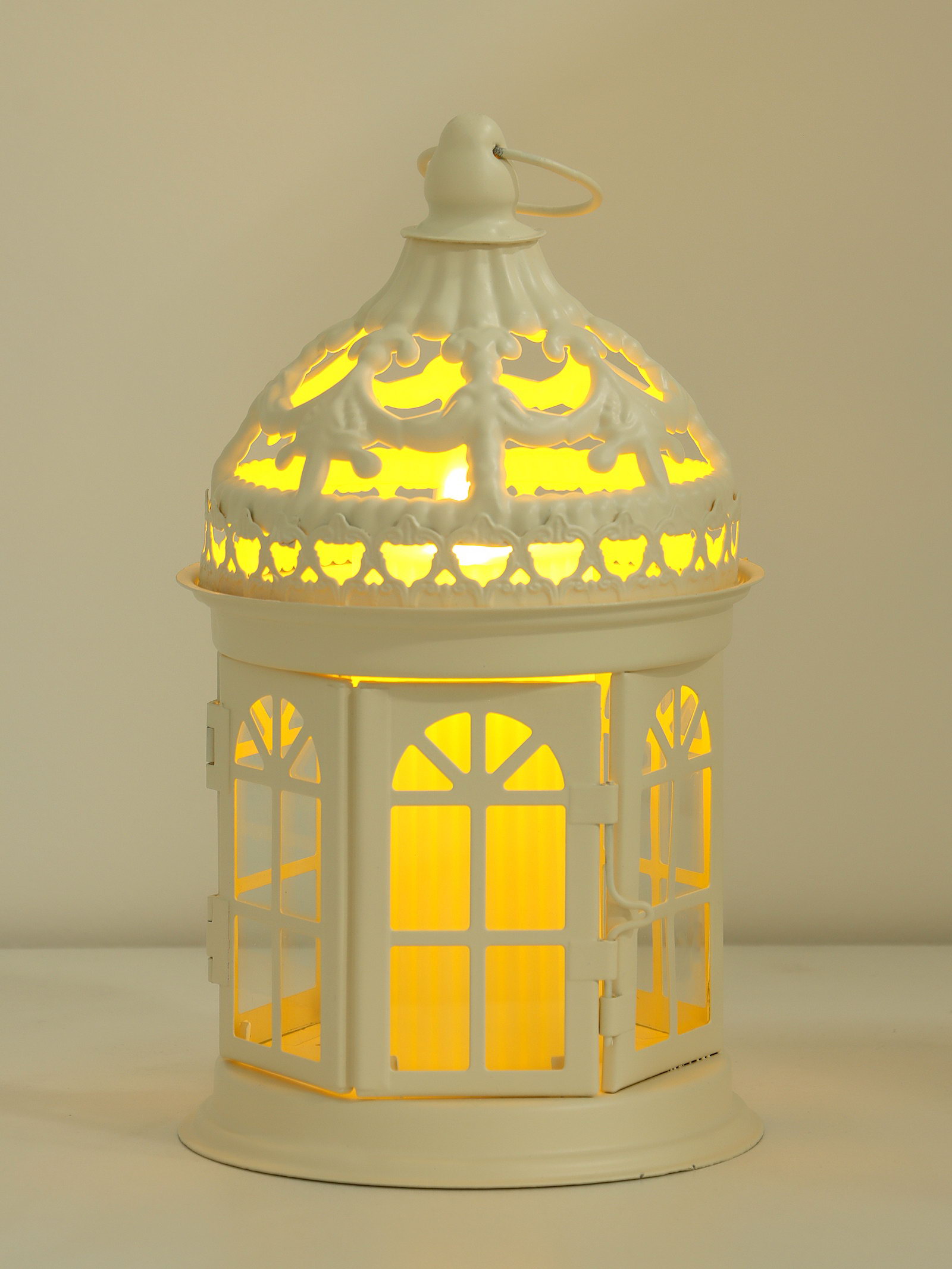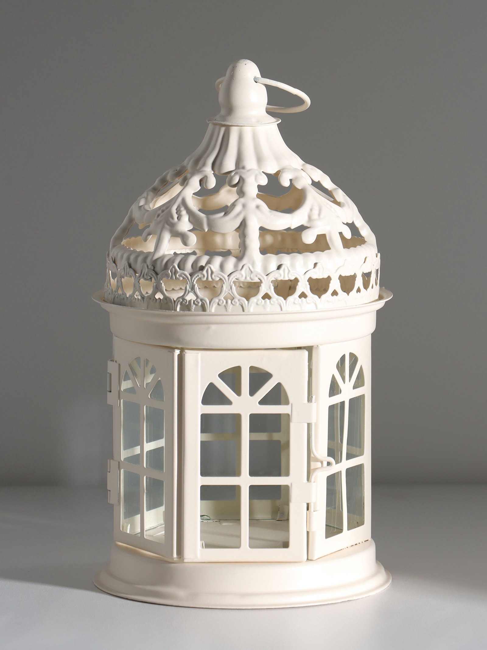 Металлический подсвечник-фонарь на 1 свечу "Ажурная беседка", белый, 12.5x12.5x21 см, 12.5x21 см., Китай