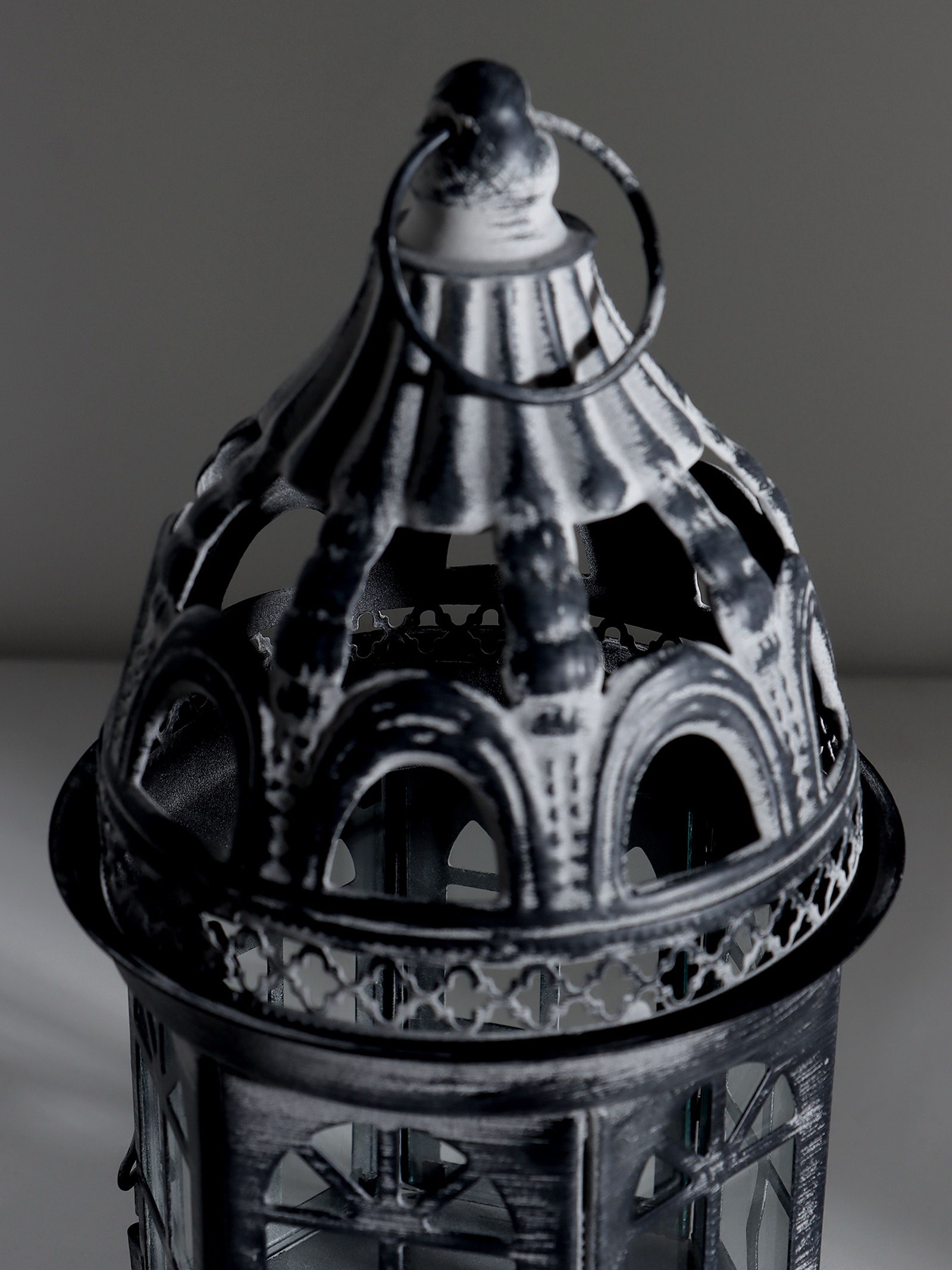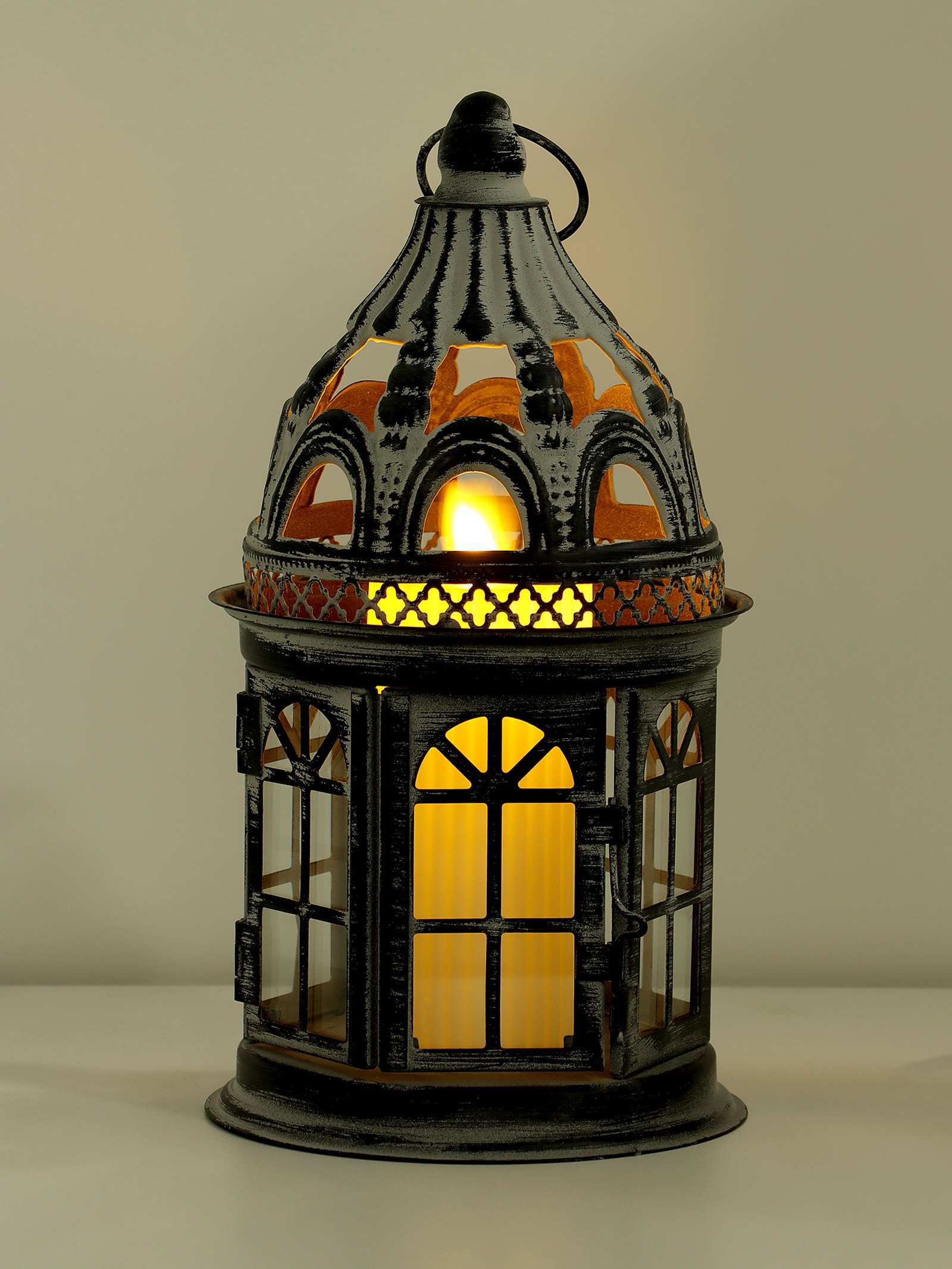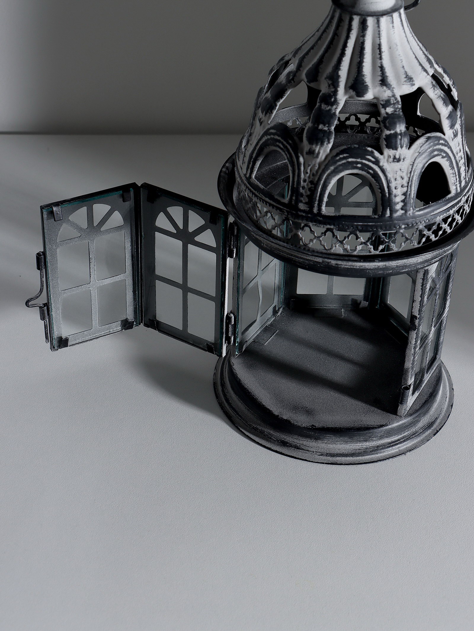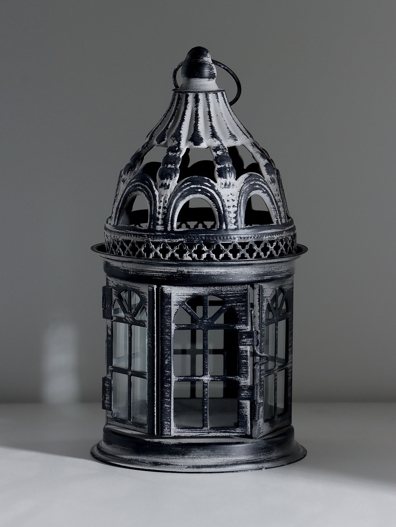 Металлический подсвечник-фонарь на 1 свечу "Старинный замок", чёрный, 13x13x23 см, 13x23 см., Китай