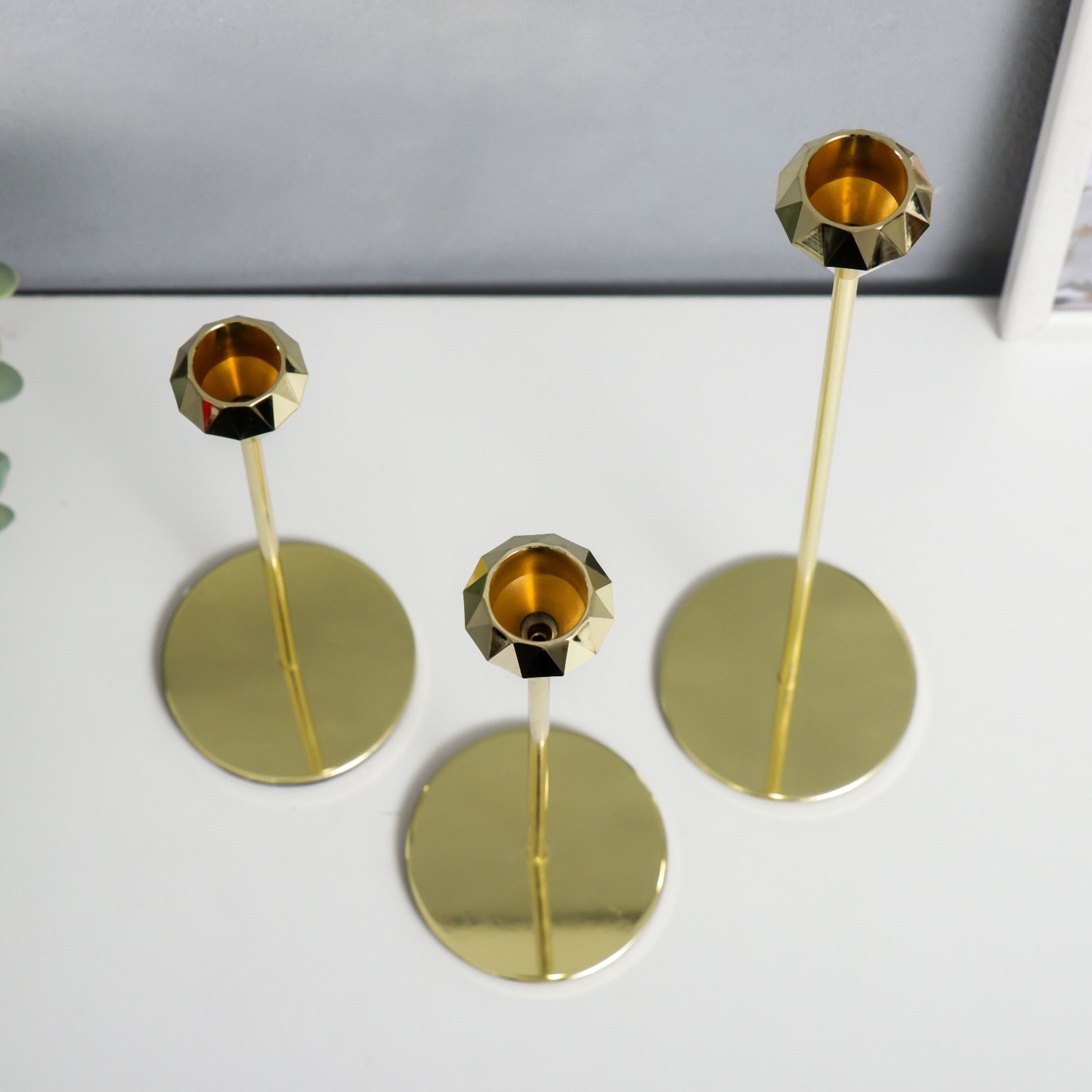 Металлический подсвечник на 1 свечу "Милан. Грани", набор 3 шт., золото, h=22; 26.5; 32 см; 32x8x8 см, 8x8x32 см., Китай