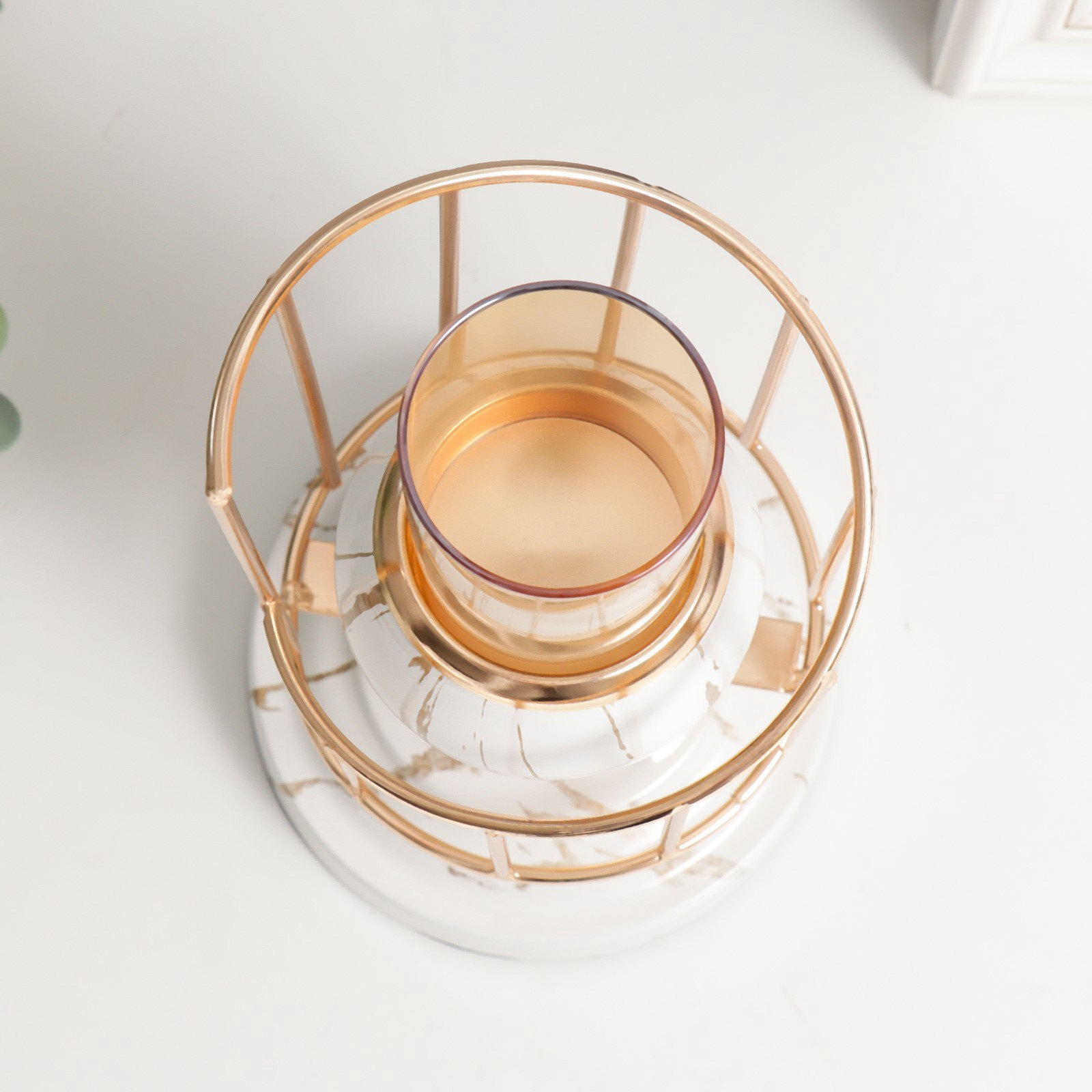 Подсвечник на 1 свечу "Белый мрамор с золотыми трещинками. Лестница", 23x13x13 см, 13x23 см., Китай