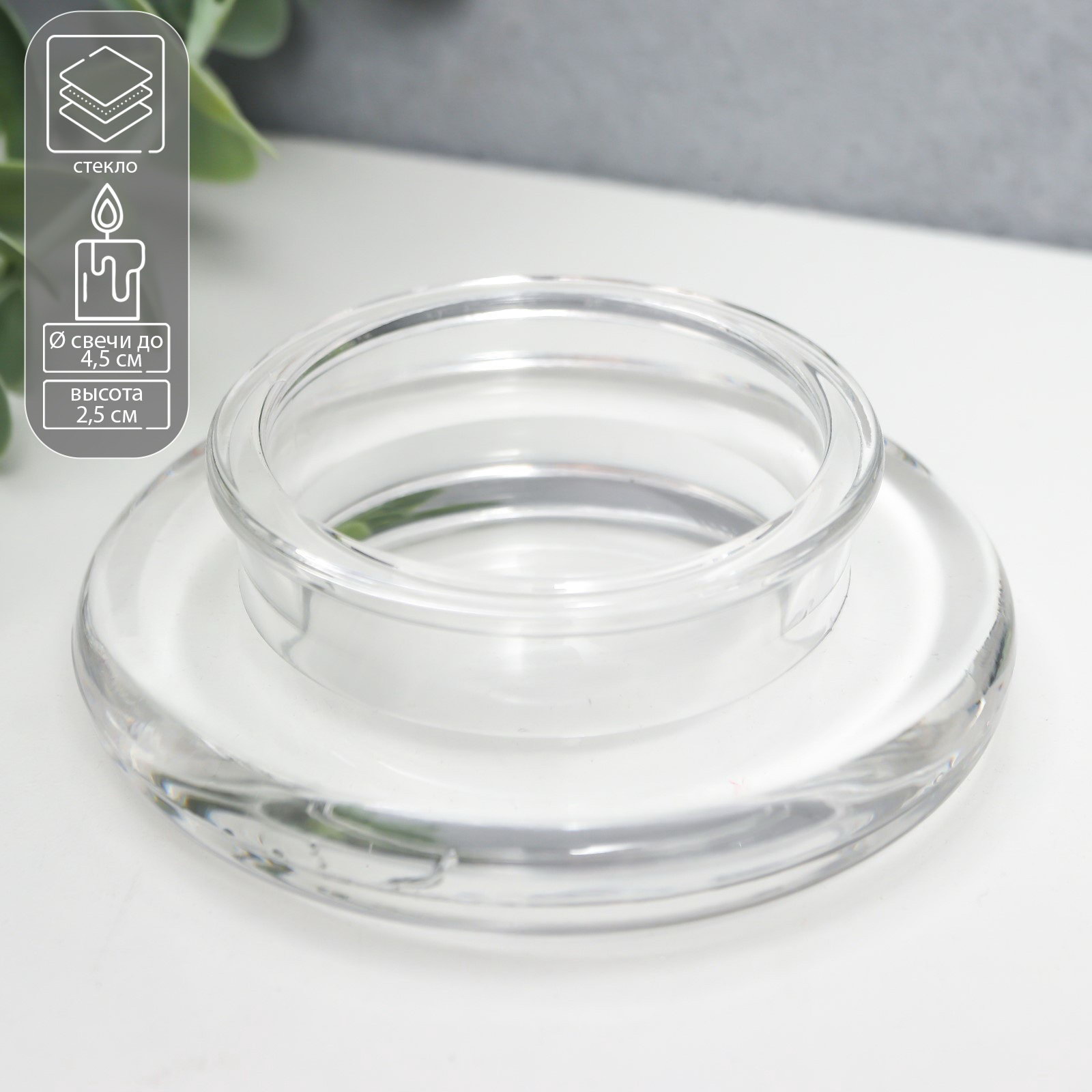 Стеклянный подсвечник на 1 свечу "Анта", d=4.5 см, прозрачный, 8.5x8.5x2.5 см, 8.5x8.5x2.5 см., Китай
