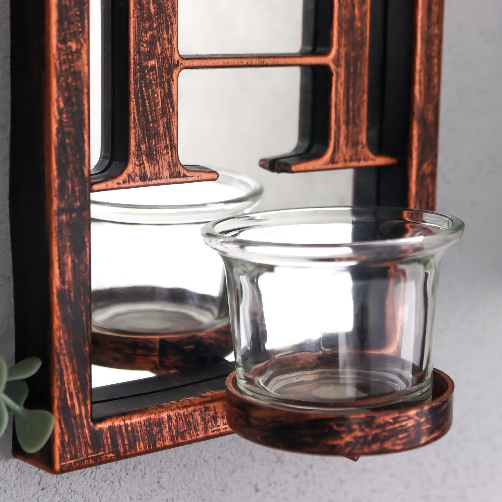 Подсвечник настенный на 1 свечу "Отражение веры", зеркальный, пластик, стекло, d-4 см, состаренная бронза, 8x12x41 см, 12x8x41 см., Китай