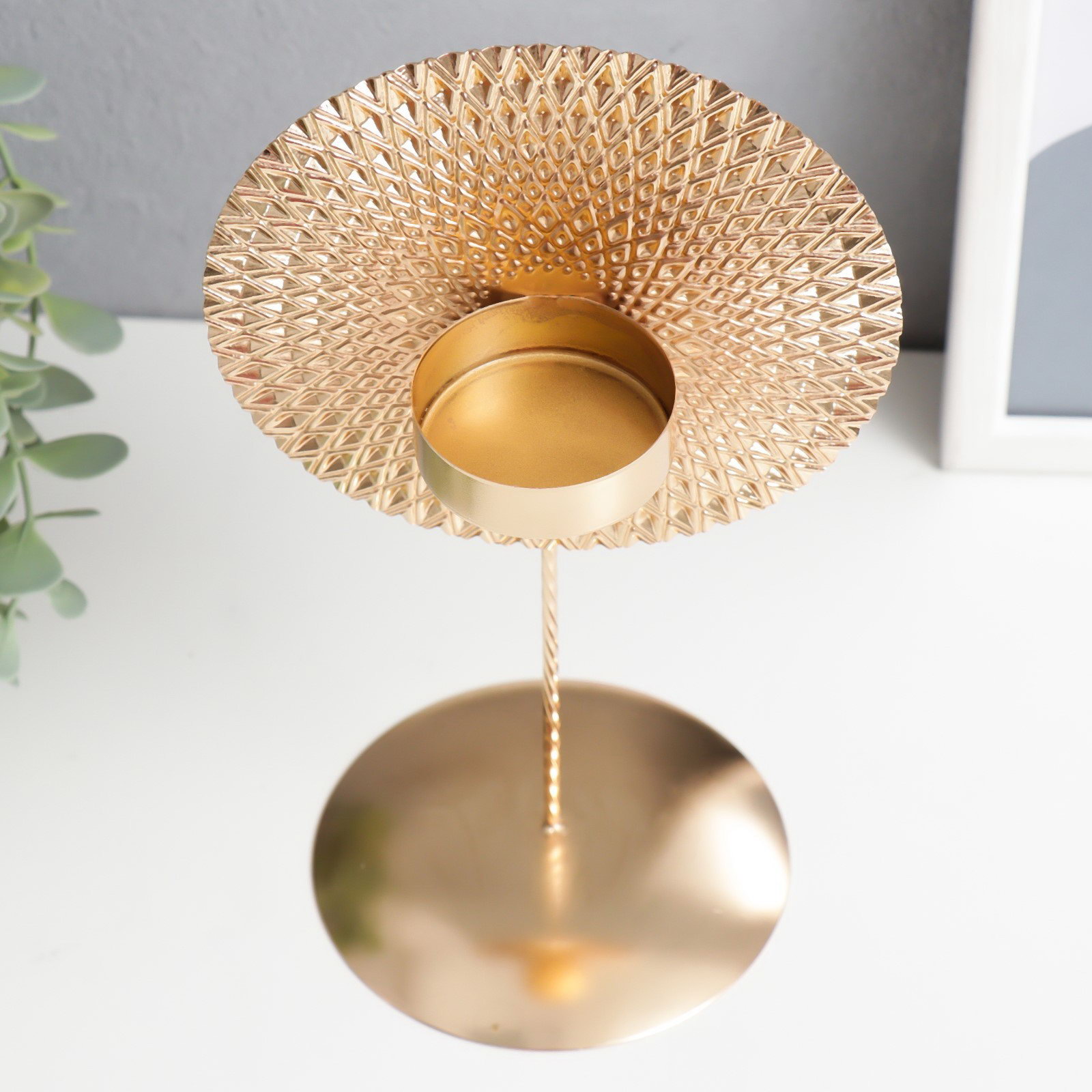 Подсвечник металл на 1 свечу "Этнический круг", под золото, 25.5x13.5x11 см, 13.5x11x25.5 см., Китай