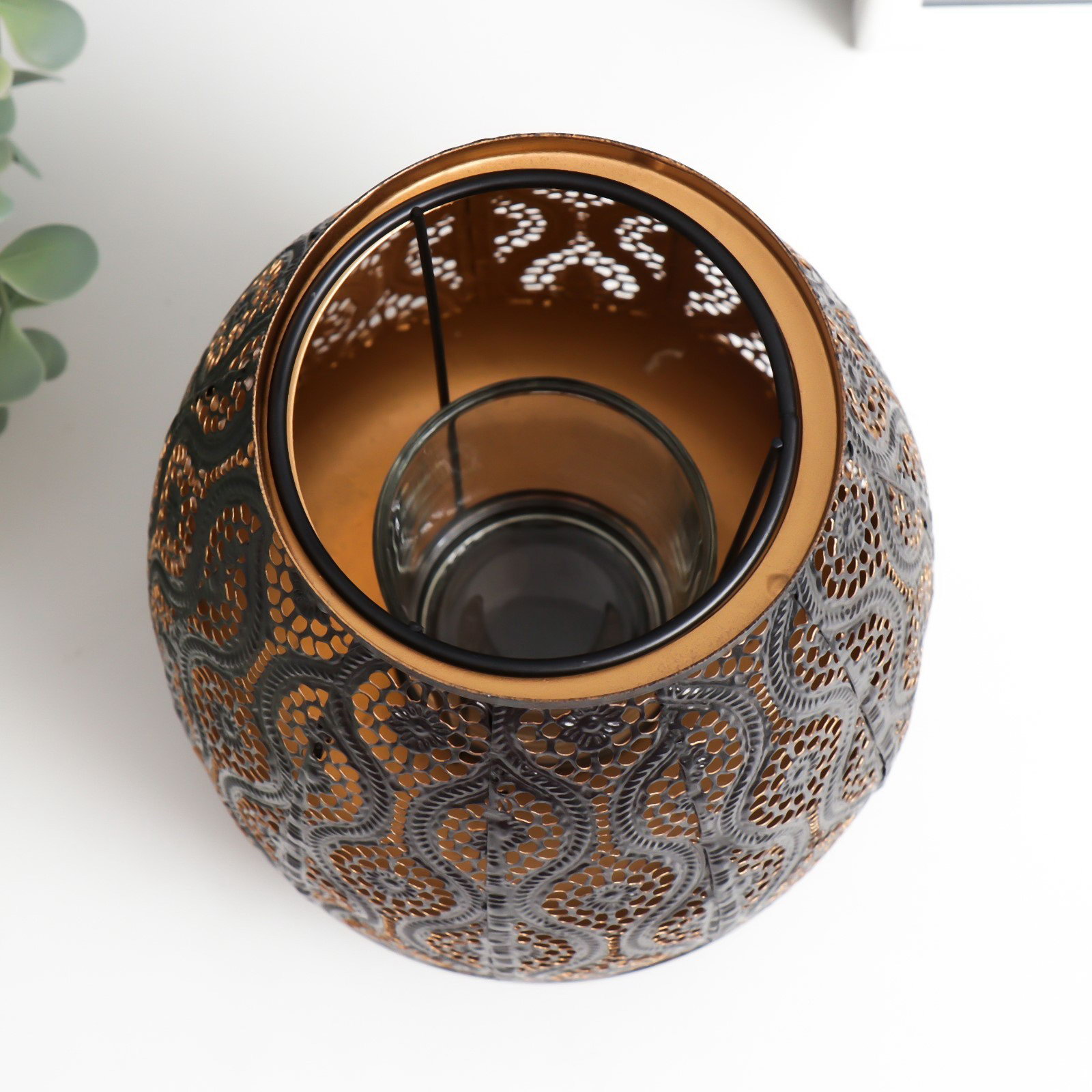 Металлический подсвечник на 1 свечу "Арабская ночь", чёрный с золотом, 22x15.5x15.5 см, 15.5x15.5x22 см., Китай