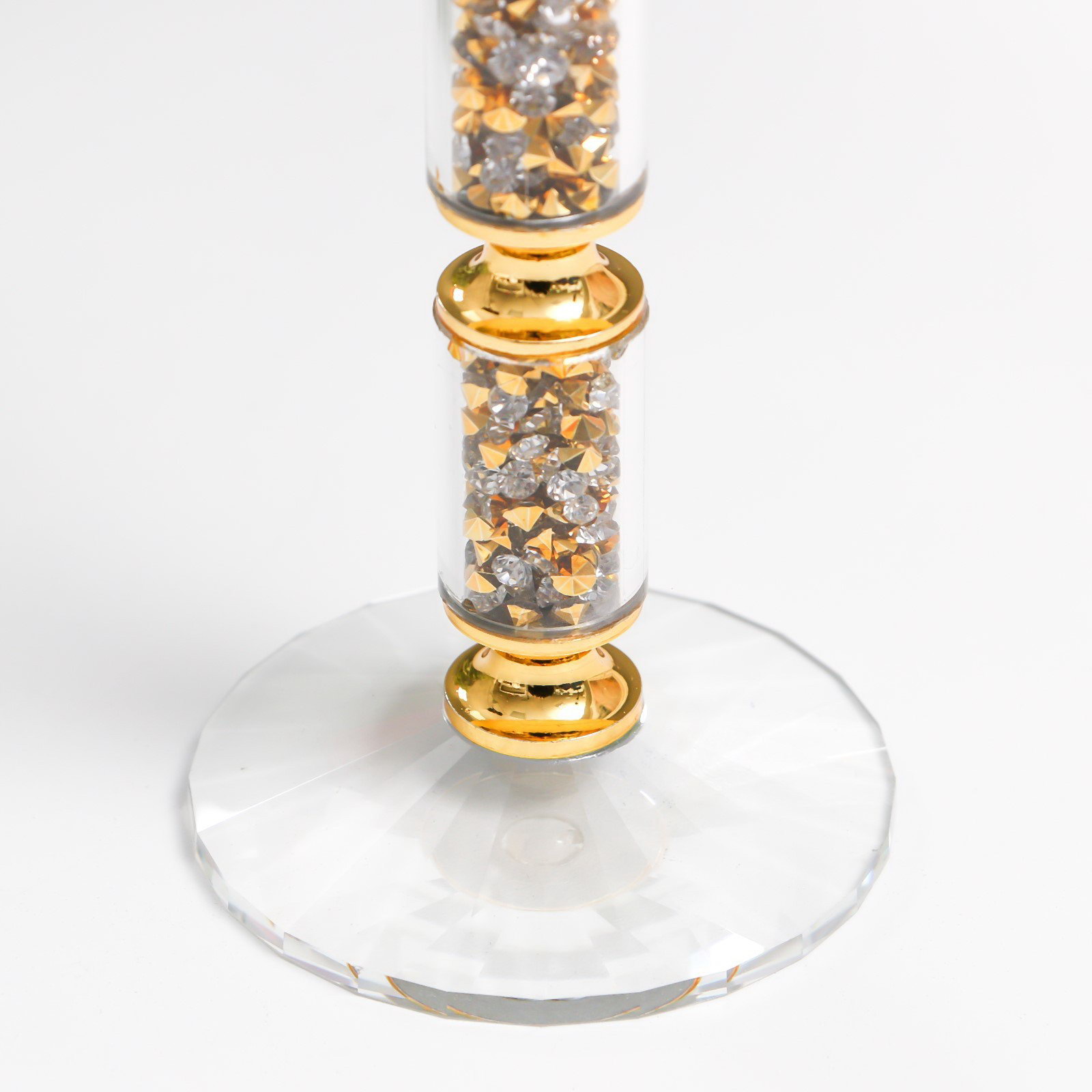 Стеклянный подсвечник на 1 свечу "Ребристый на ножке со стразами", с золотом, d=2.5 см, 7x7x16 см, 7x7x16 см., Китай