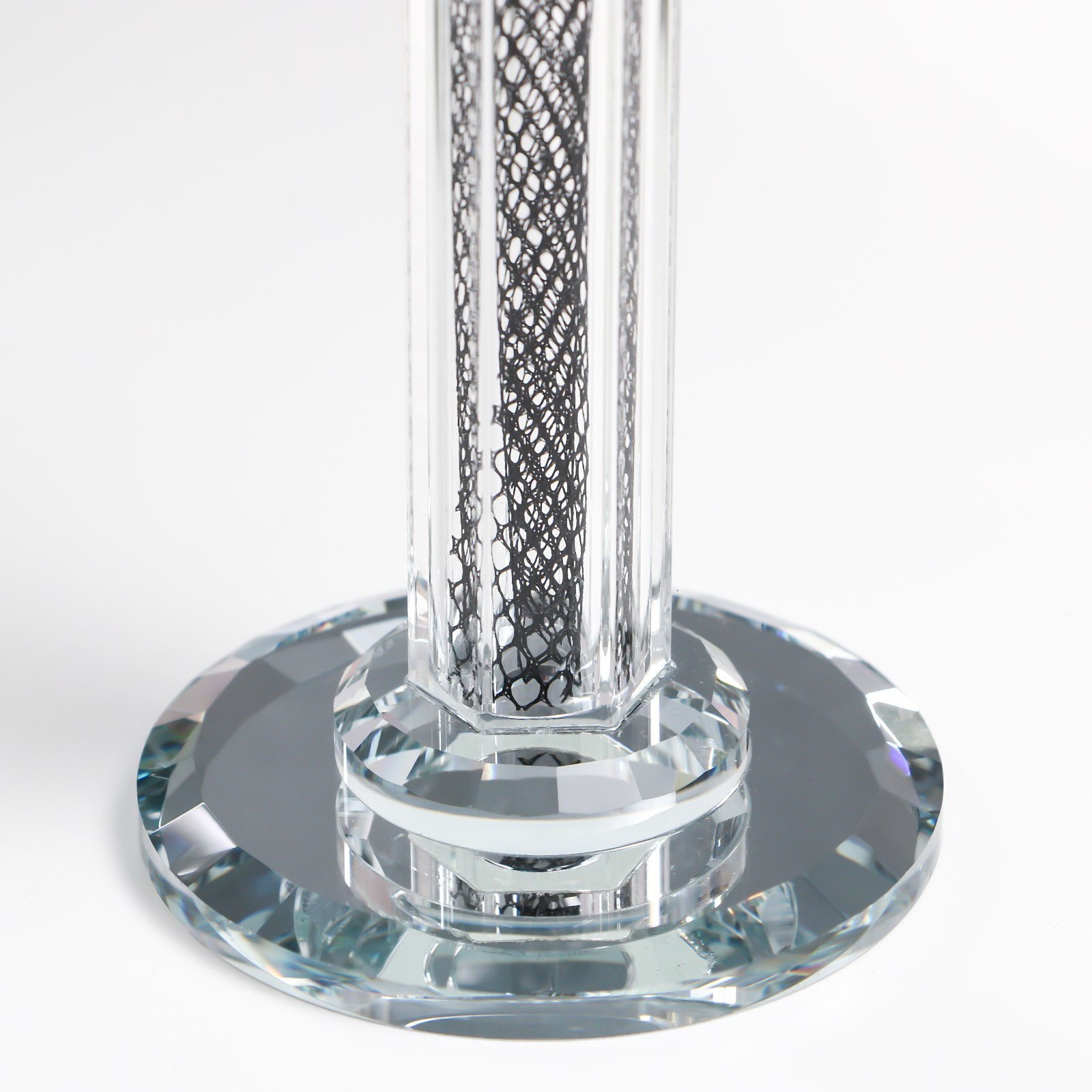 Стеклянный подсвечник на 1 свечу "Узорный бутон", на ножке, d=2 см и 4 см; 7.7x7.7x17 см, 7x7x17.5 см., Китай