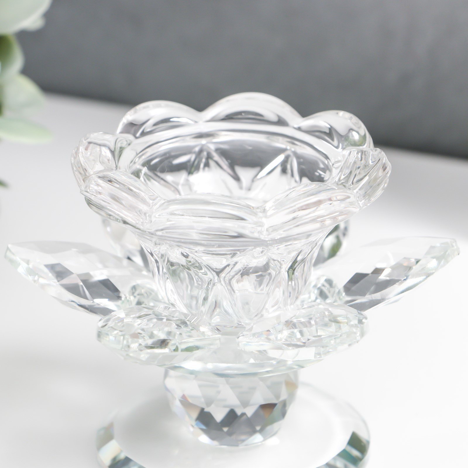 Стеклянный подсвечник на 1 свечу "Цветок", d=2.5 см и 4.5 см; 10x10x7 см, 10x10x7 см., Китай