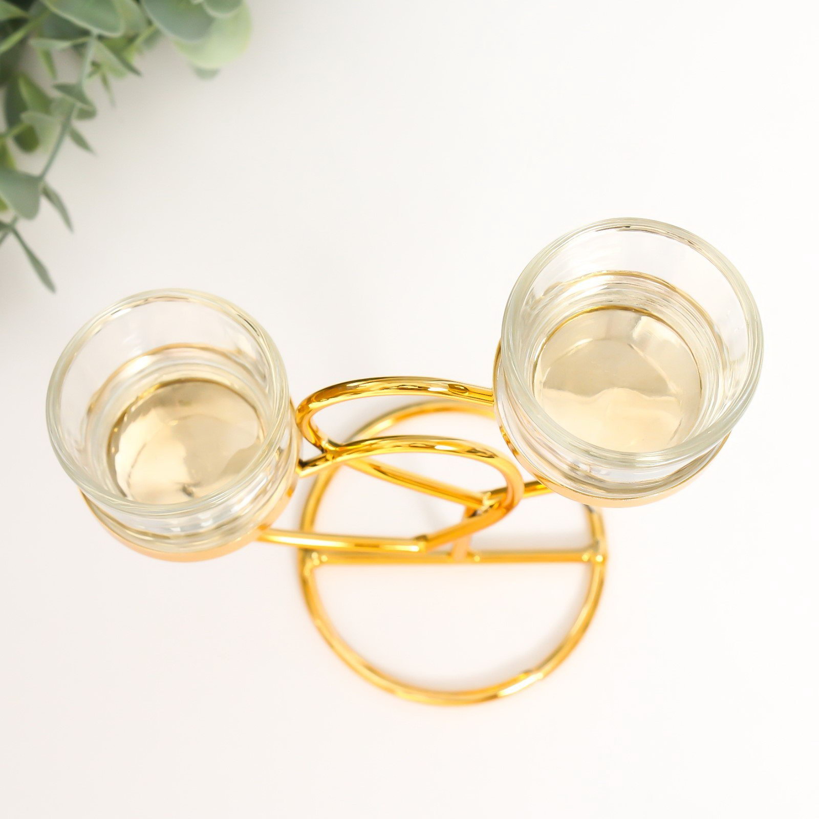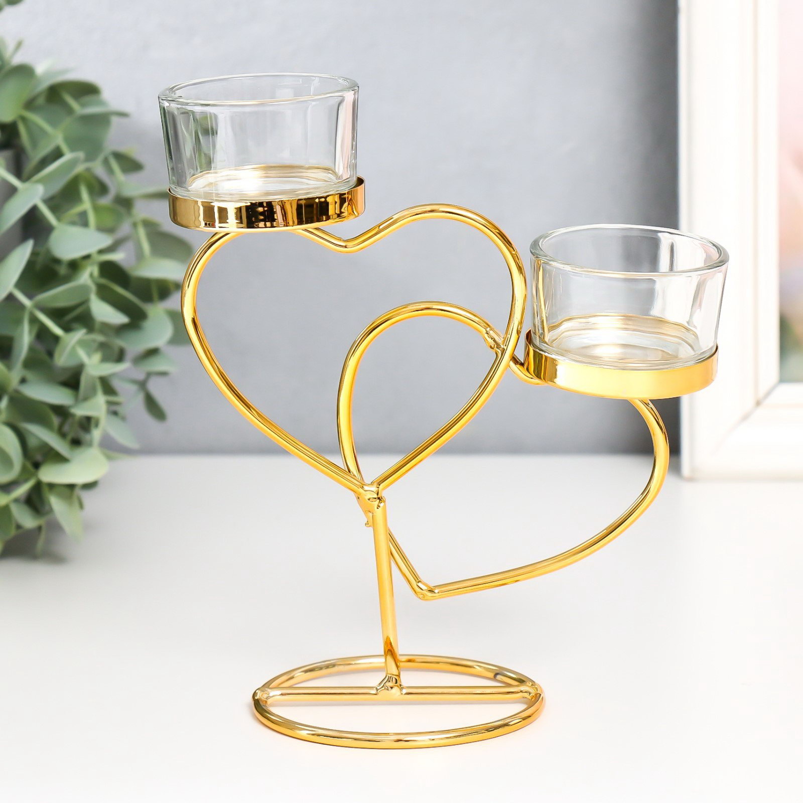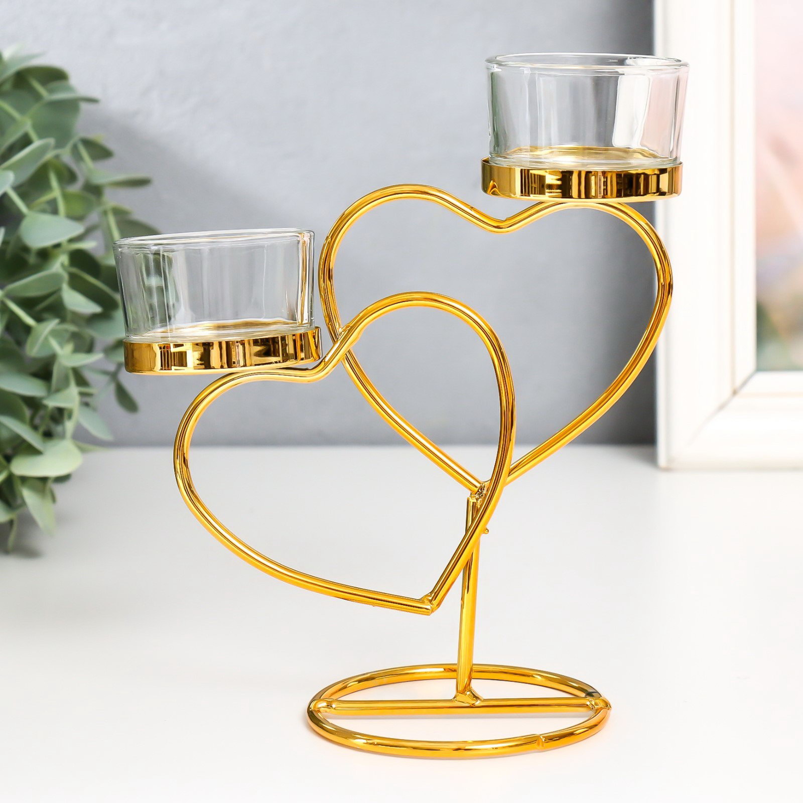 Подсвечник металл, стекло на 2 свечи "Два сердца" d-4.5 см золото 14х6.5х17.5 см, 14x6.5x17.5 см., Китай