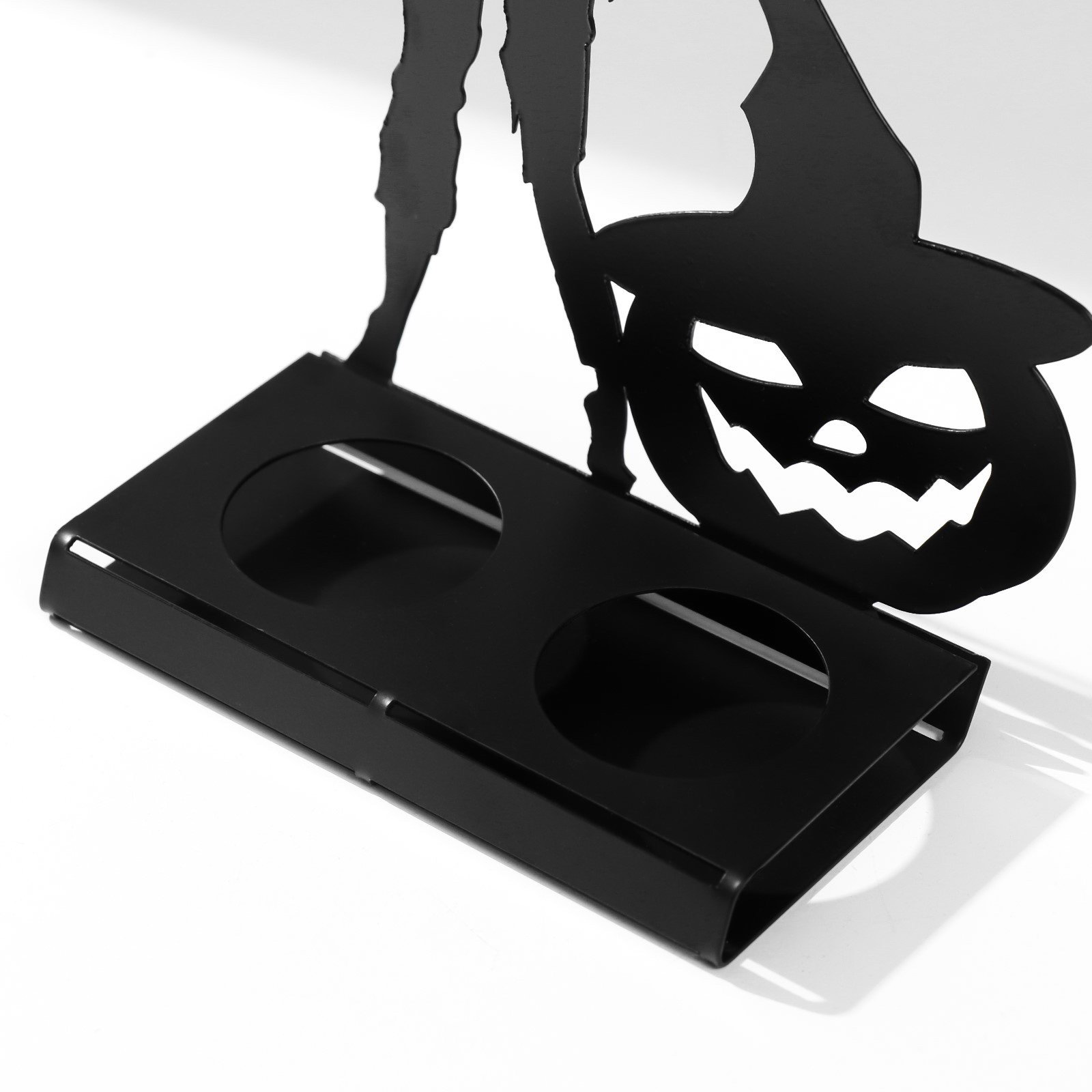Тематика праздника: Универсальная тематика, Хэллоуин Размер упаковки: 18.5 x 3 x 25.5 см. Набор: Нет tnved: 9405500000 Высота, см: 17.5 Количество рожков: 2 Свеча в комплекте: Нет Цвет: Чёрный Диаметр под свечу, см: 4 | ||